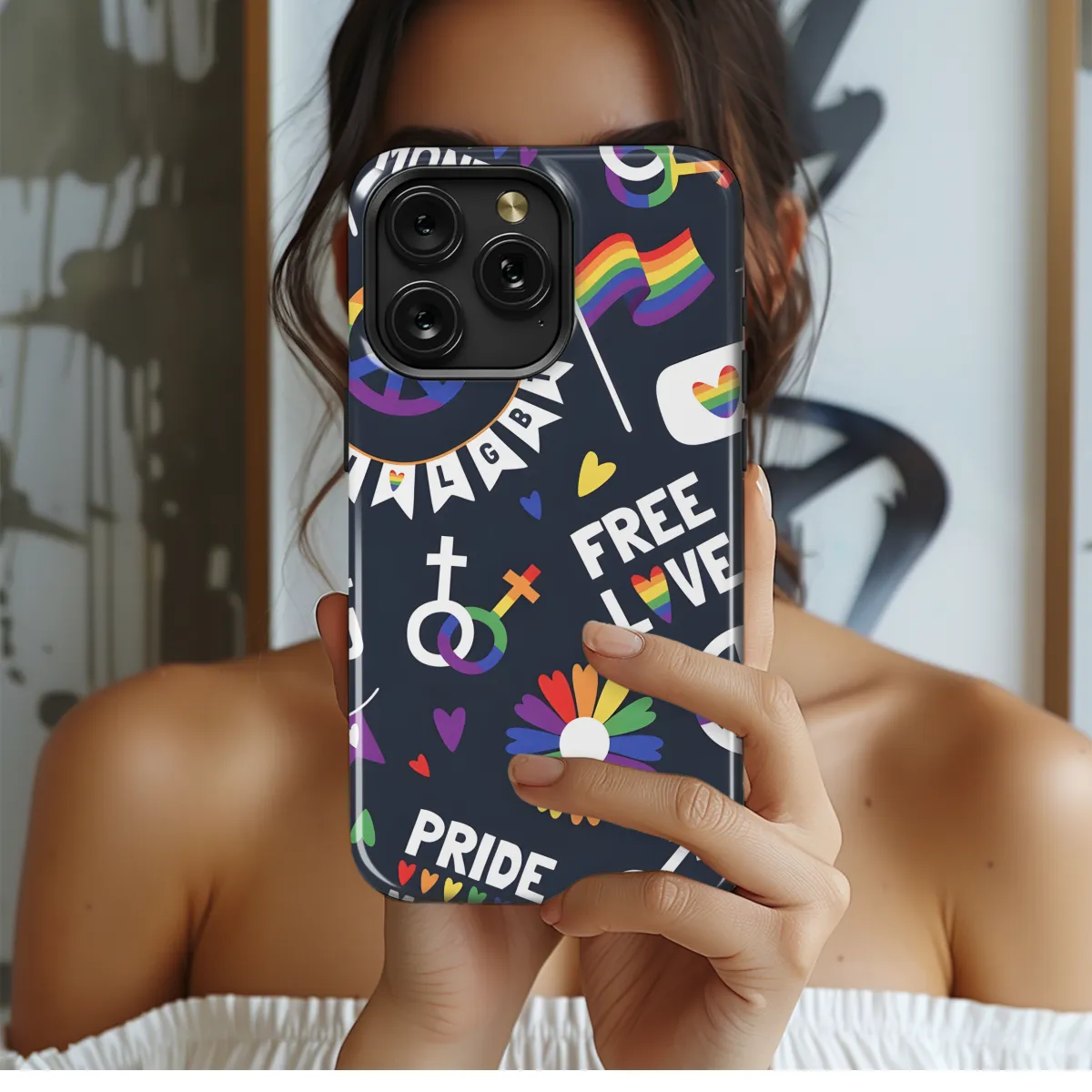 Celebrate your Pride with our eye-catching LGBT Pride Phone Case. Available for iPhone, Samsung, and Pixel devices, this case is the perfect way to show off your support for the LGBTQ+ community while protecting your phone. The vibrant rainbow design will add a pop of color to your device, while the durable construction will keep it safe from scratches and dings. Show your Pride and style with this must-have phone case!