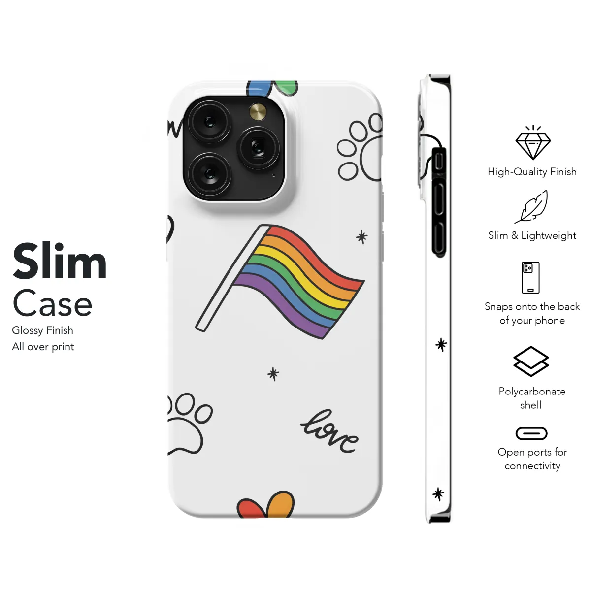 This vibrant and eye-catching phone case is the perfect way to show your pride. The rainbow design is sure to turn heads, and it's a great way to show your support for the LGBTQ+ community. The case is made of durable materials that will protect your phone from scratches and drops, and it's also easy to clean. Whether you're using it for your iPhone, Samsung, or Pixel, this case is sure to make a statement.