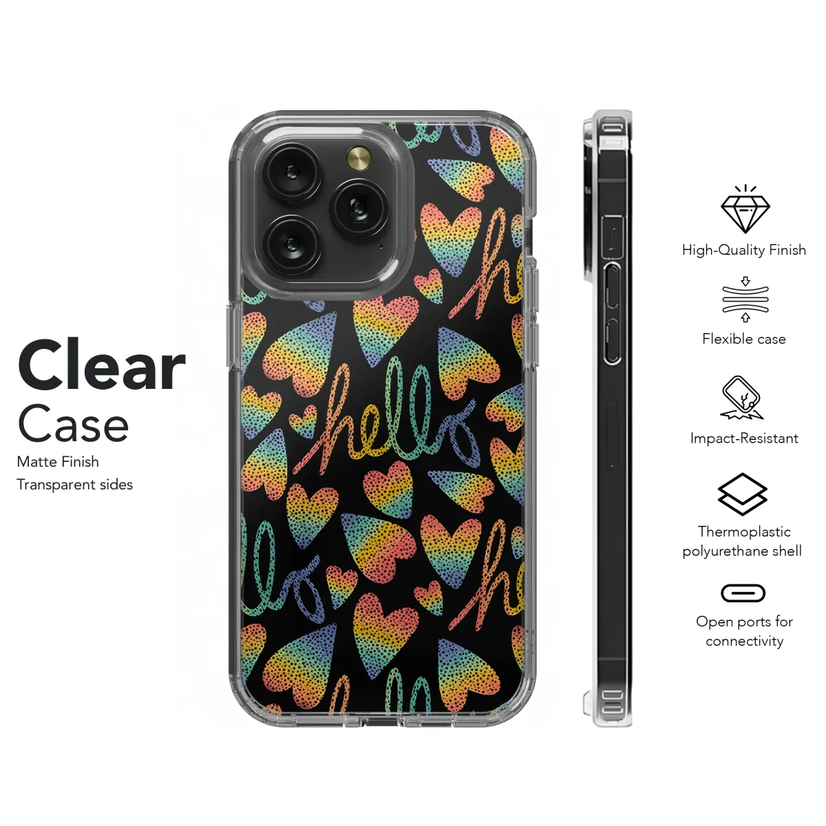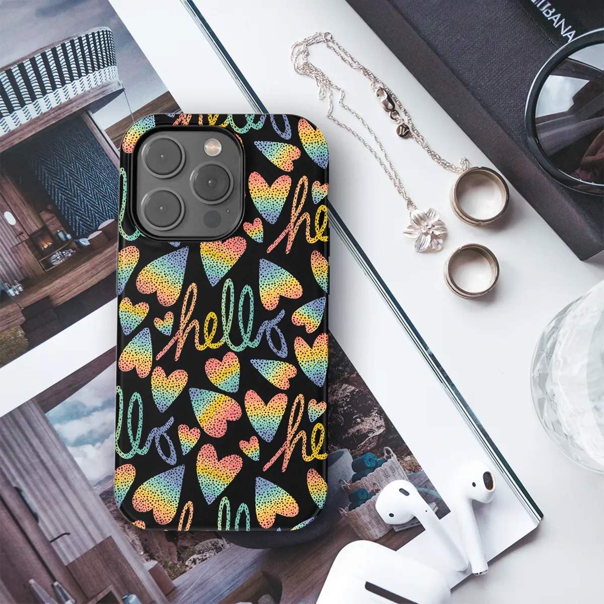 Introducing the ultimate accessory for your phone - our exclusive LGBTQ Hello Phone Case! Compatible with a wide range of iPhone, Samsung, and Pixel models, this case offers both protection and style. Featuring a vibrant rainbow design with the iconic "Hello" greeting, it's a perfect way to express your pride and individuality. Made from durable materials, it will keep your phone safe from scratches and drops, while its slim profile ensures a comfortable grip. Show off your true colors with this eye-catching phone case today!