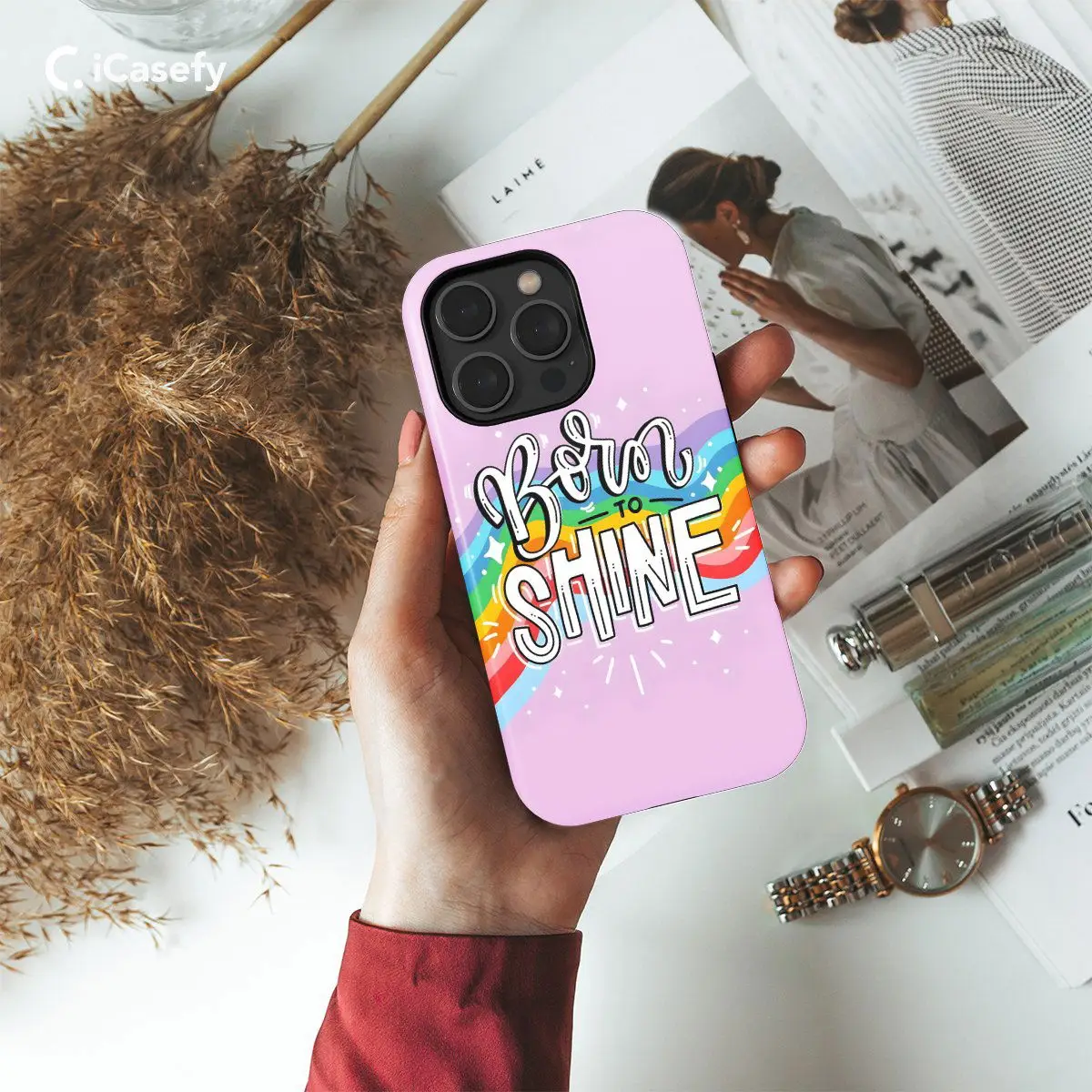 Celebrate pride and self-expression with this empowering phone case featuring the LGBTQ+ Pride Flag and the inspiring phrase "Born to Shine." Emblazoned with vibrant colors and a message of empowerment, this case serves as a symbol of love, acceptance, and visibility for the LGBTQ+ community. Carry the spirit of pride and authenticity with you wherever you go and let your device shine as a beacon of inclusivity and equality with this uplifting accessory.