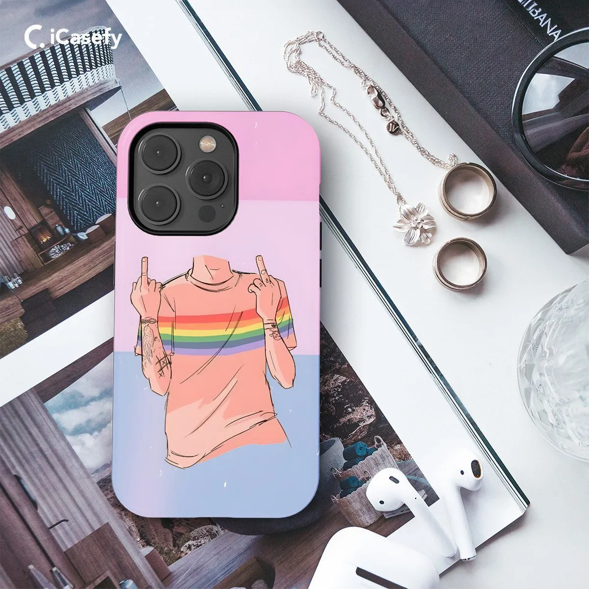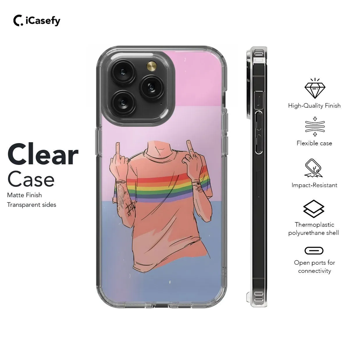 Celebrate the diverse and inclusive spirit of the LGBTQ+ community with this empowering phone case featuring the vibrant colors of the Pride Flag. Inspired by unity and equality, this case is adorned with silhouettes representing men, standing proud and united. Carry the message of love, acceptance, and solidarity with you wherever you go, and let your device shine as a symbol of LGBTQ+ pride and visibility.