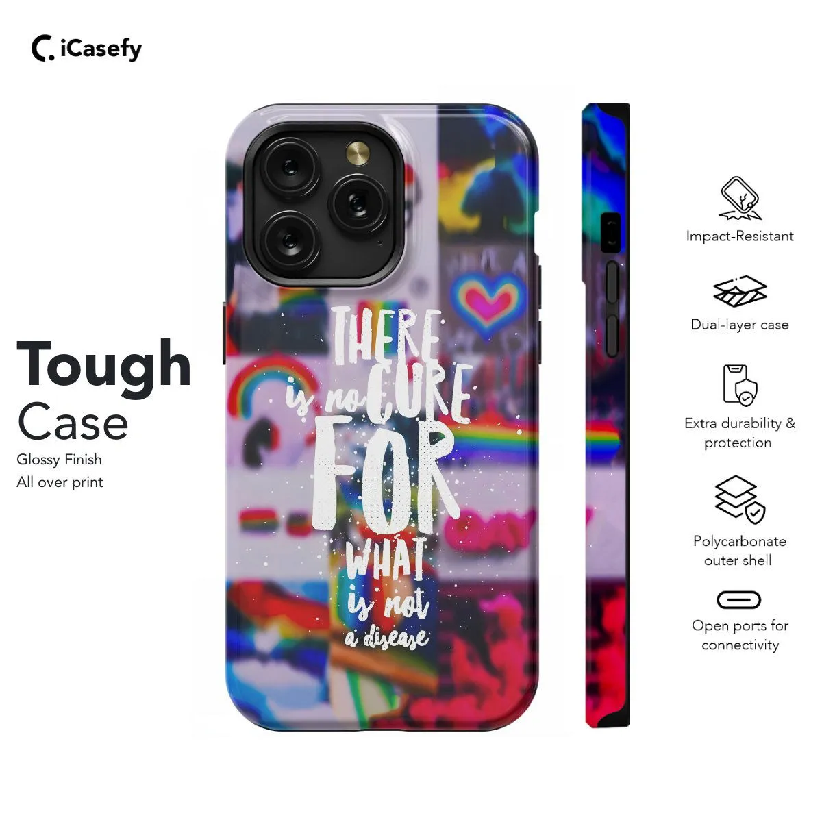 Embrace the spirit of pride and resilience with this empowering phone case featuring a collage of the LGBTQ+ Pride Flag and the poignant message, "There is no cure for what is not a disease." This powerful statement affirms the diverse identities and experiences within the LGBTQ+ community while challenging harmful misconceptions. Carry the message of acceptance and self-love with you wherever you go, and let your device serve as a beacon of advocacy and equality with this impactful accessory.