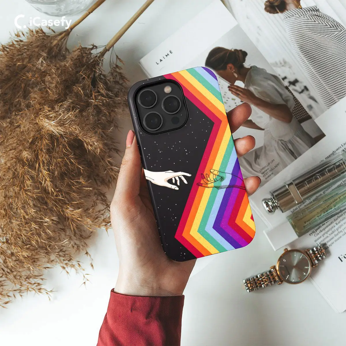 Embrace love and unity with this powerful phone case featuring the LGBTQ Pride Flag adorned with stars and hands. Inspired by the spirit of inclusivity and acceptance, this case celebrates diversity and the strength of community. Carry the message of equality and solidarity with you wherever you go, and let your device become a beacon of pride and support for the LGBTQ+ community.