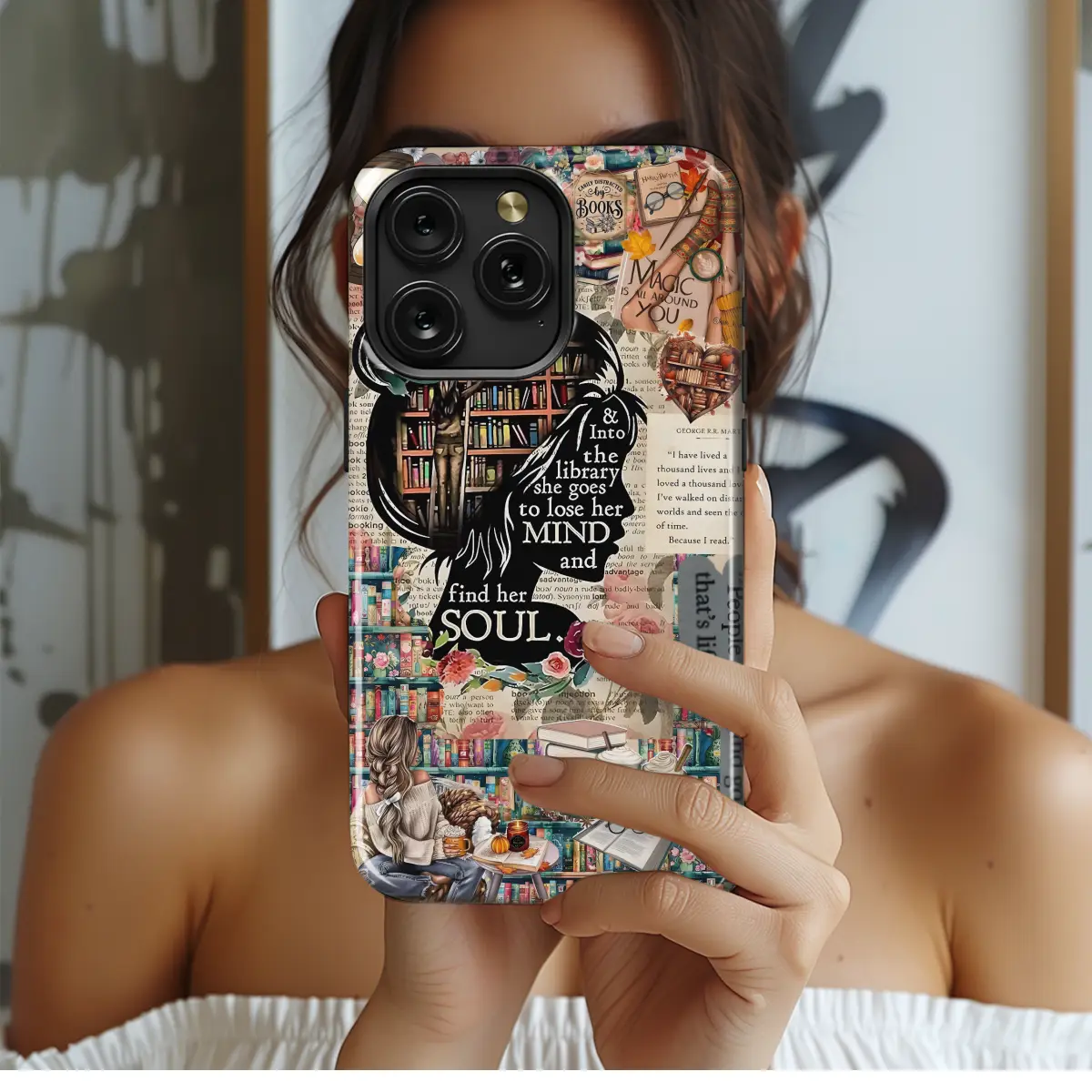 Escape into a literary haven with our Library Girl Soul phone case! This enchanting cover transports you to a world of words, where your device becomes a window into a captivating novel. Featuring a whimsical illustration of a book-loving girl surrounded by floating books, this case captures the essence of bibliophiles everywhere. Protect your phone in style and indulge in the magic of storytelling with every glance at your device.