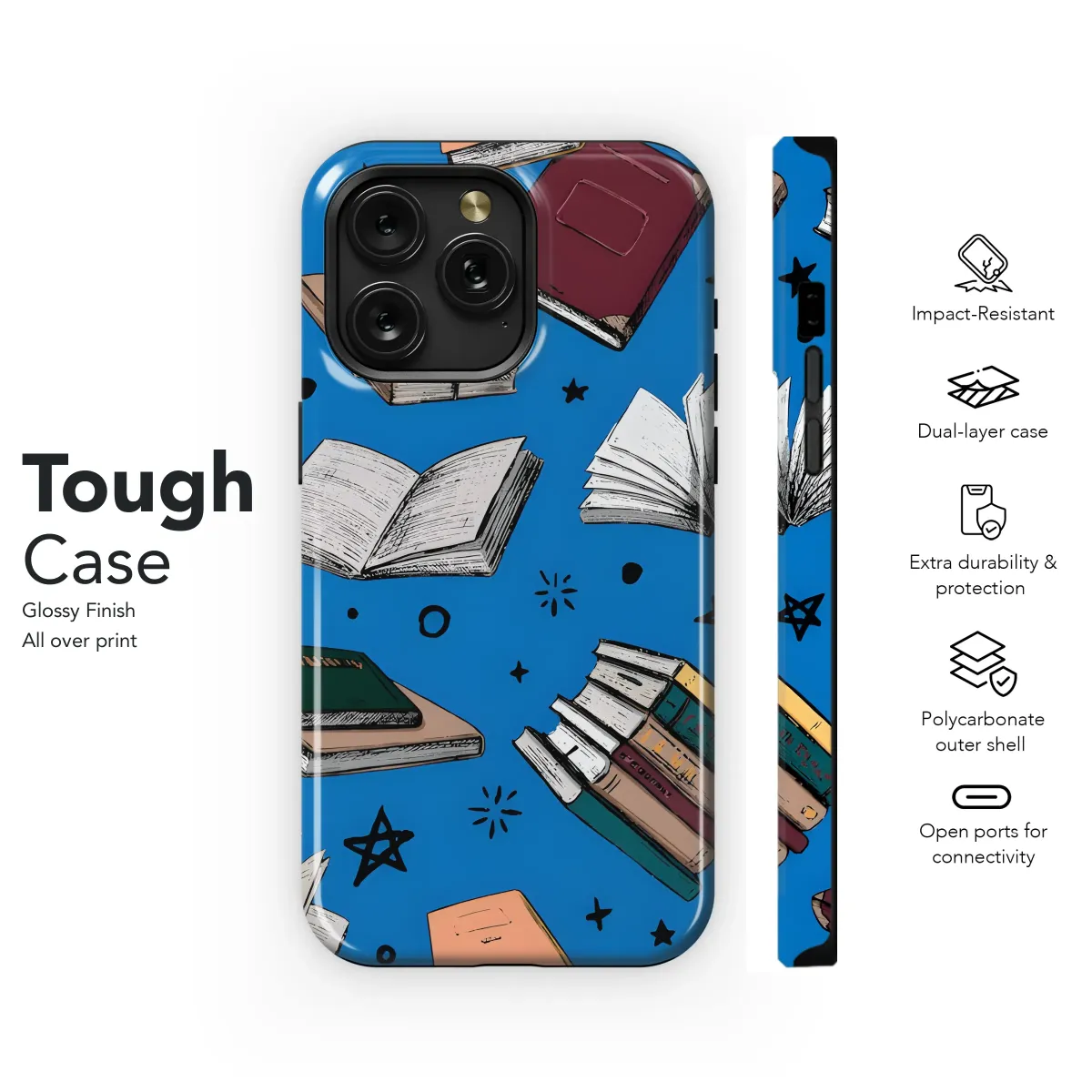 Showcase your love for literature with this captivating design. Featuring a whimsical array of hand-drawn books, this vibrant print is perfect for adding a touch of intellectual charm to your everyday essentials. The enchanting blue background is scattered with playful stars and doodles, creating a whimsical and magical aesthetic. Each book is uniquely illustrated with detailed textures and varied colors, promising a stylish and one-of-a-kind accessory. This design beautifully captures the joy of reading and the allure of discovery, making it an ideal gift for bookworms, students, teachers, or anyone who appreciates artistic expression. The high-quality print ensures vibrant colors that will last, resisting fading and scratches for long-lasting enjoyment. Transform your personal item into a statement piece, celebrating the power of stories and the beauty of handcrafted artistry. Express your individuality with this unique and eye-catching design, a delightful blend of creativity and classic charm. Protect your device in style with this beautifully detailed, expressive, and durable design.