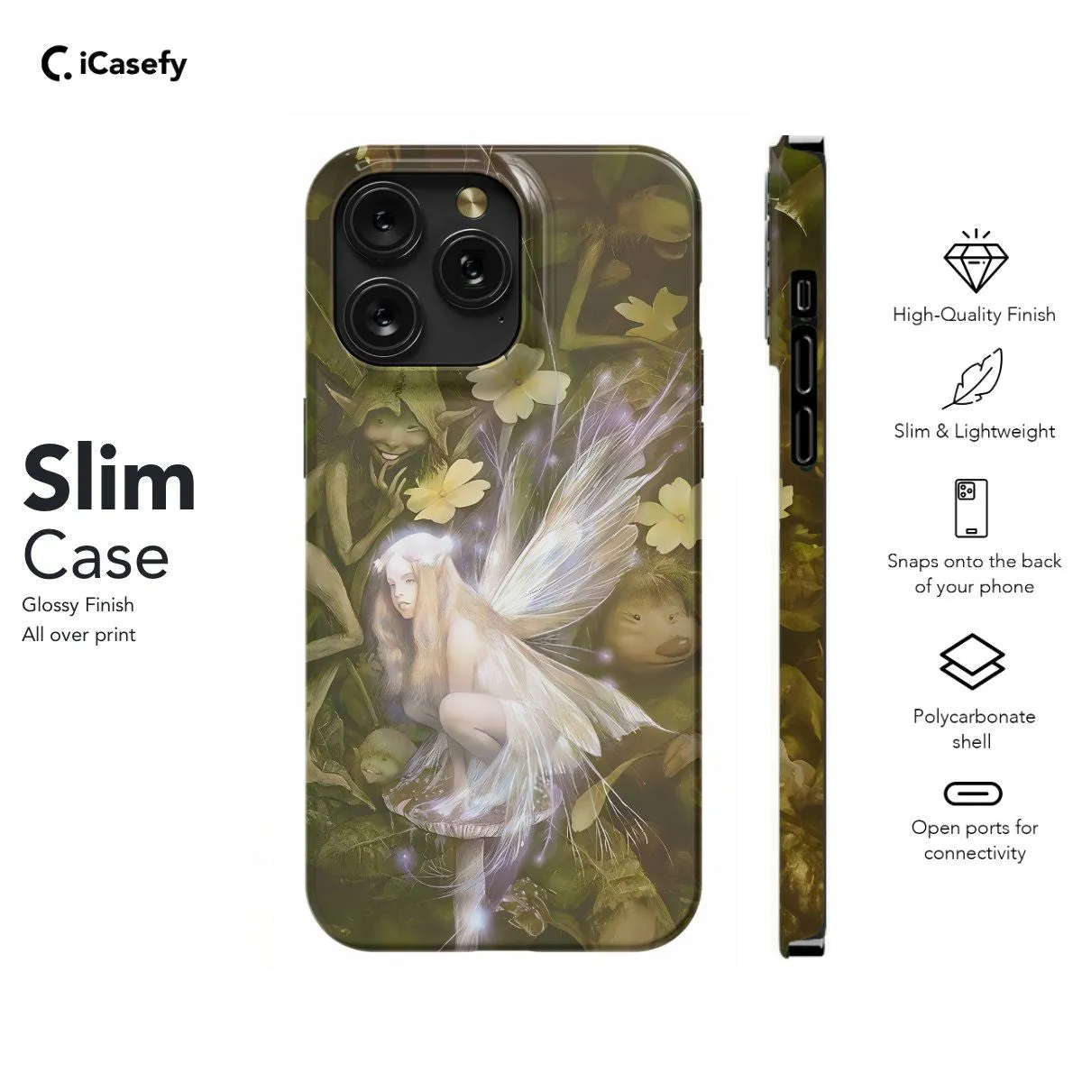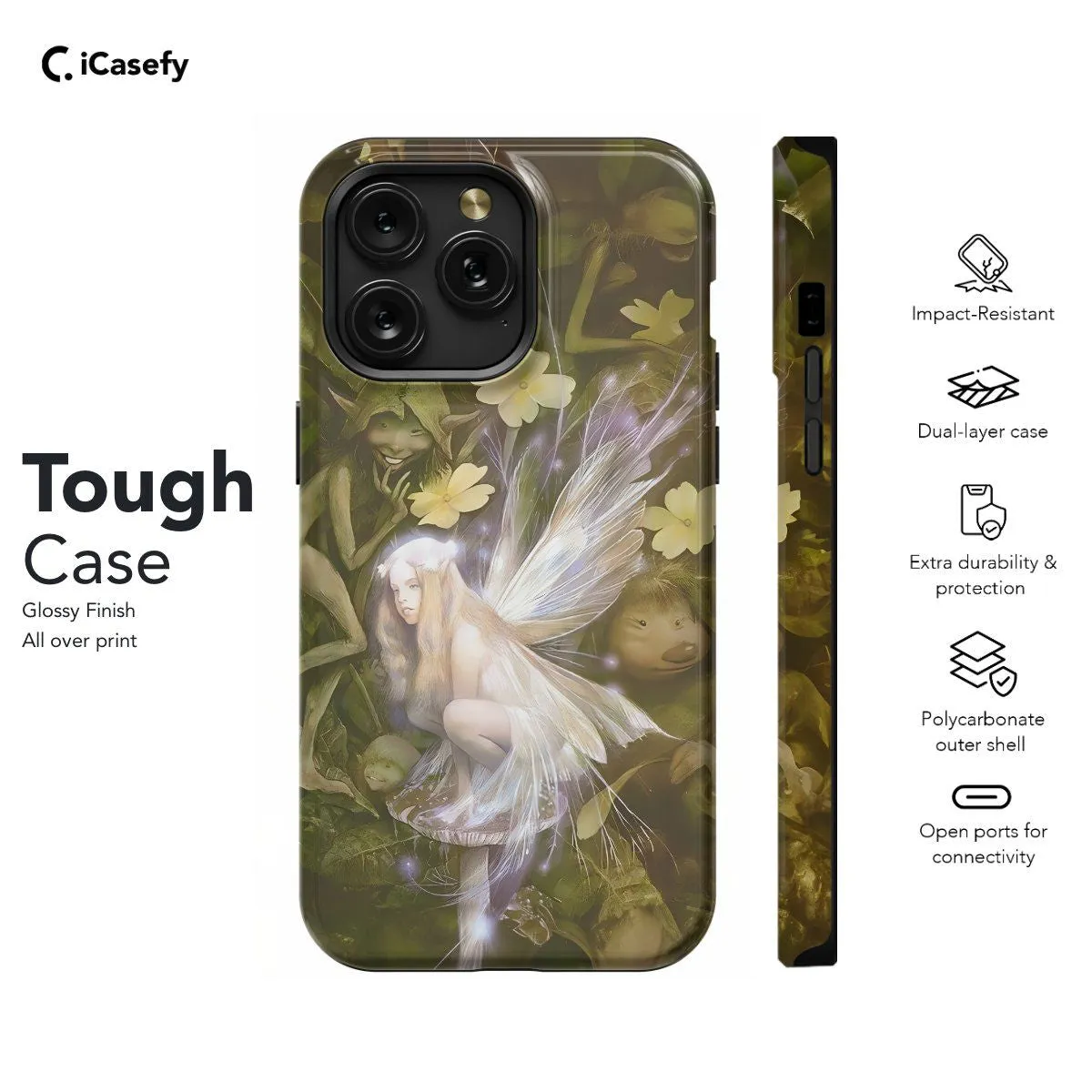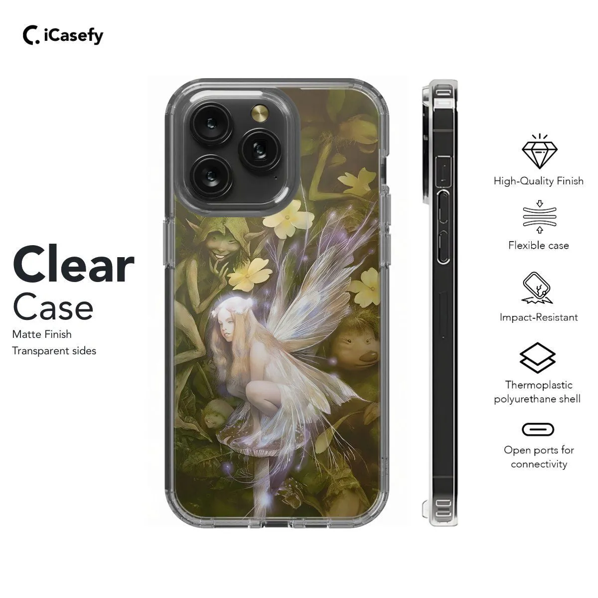 Embrace whimsical charm with our Little Fairy Cottagecore phone case. Featuring delightful fairies amidst rustic cottage scenery, this design captures the essence of enchanted living. Crafted for style and protection, it boasts precise cutouts for easy access to ports. Carry the magic of cottagecore wherever you go.