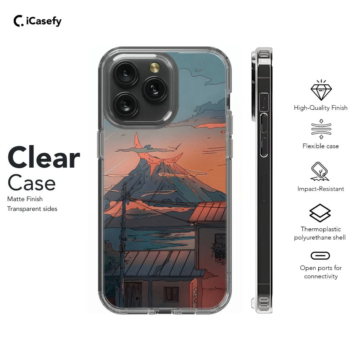 Immerse yourself in the tranquil ambiance of a lo-fi mountain landscape city with this captivating phone case. Featuring a serene scene of mountains silhouetted against a dusky sky, punctuated by the soft glow of city lights, this case exudes a sense of calm and nostalgia. Whether you're a fan of lo-fi aesthetics or simply appreciate the beauty of nature, this accessory is sure to evoke a sense of wanderlust and relaxation. Let your phone become a window to a peaceful world with this enchanting and picturesque case!