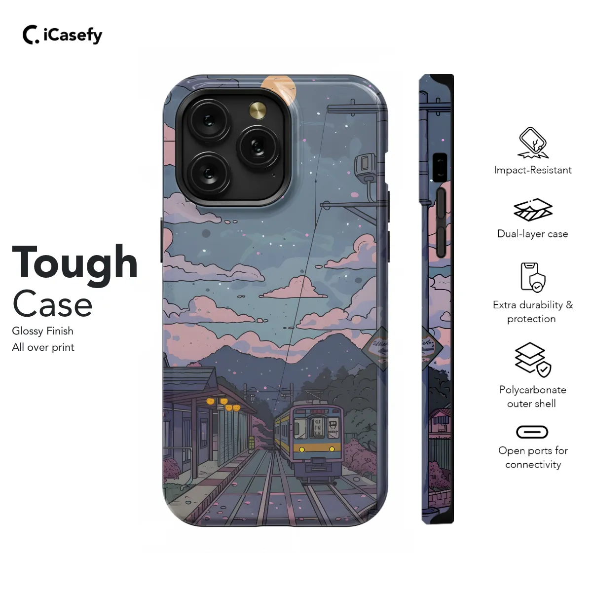 Escape into a peaceful realm with this Lofi Train Landscape Cloud Sky Phone Case. The serene design captures the ethereal beauty of a train journey under a vast sky filled with fluffy clouds. Whether you're an avid rail enthusiast or simply seeking tranquility, this case is a sanctuary for your mobile device. Its durable construction safeguards your phone, while the eye-catching artwork transports you to a world of relaxation and wonder.
