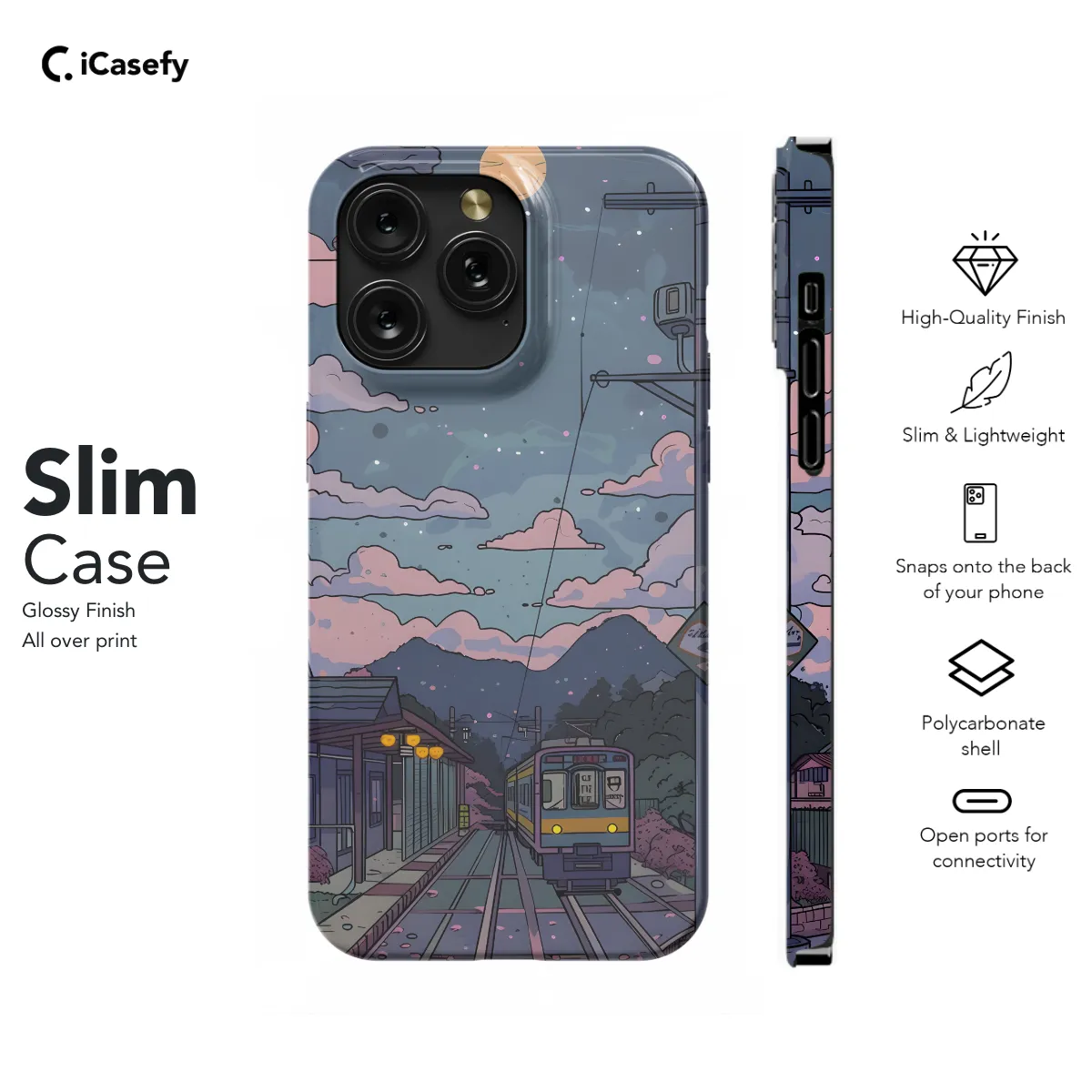 Escape into a peaceful realm with this Lofi Train Landscape Cloud Sky Phone Case. The serene design captures the ethereal beauty of a train journey under a vast sky filled with fluffy clouds. Whether you're an avid rail enthusiast or simply seeking tranquility, this case is a sanctuary for your mobile device. Its durable construction safeguards your phone, while the eye-catching artwork transports you to a world of relaxation and wonder.