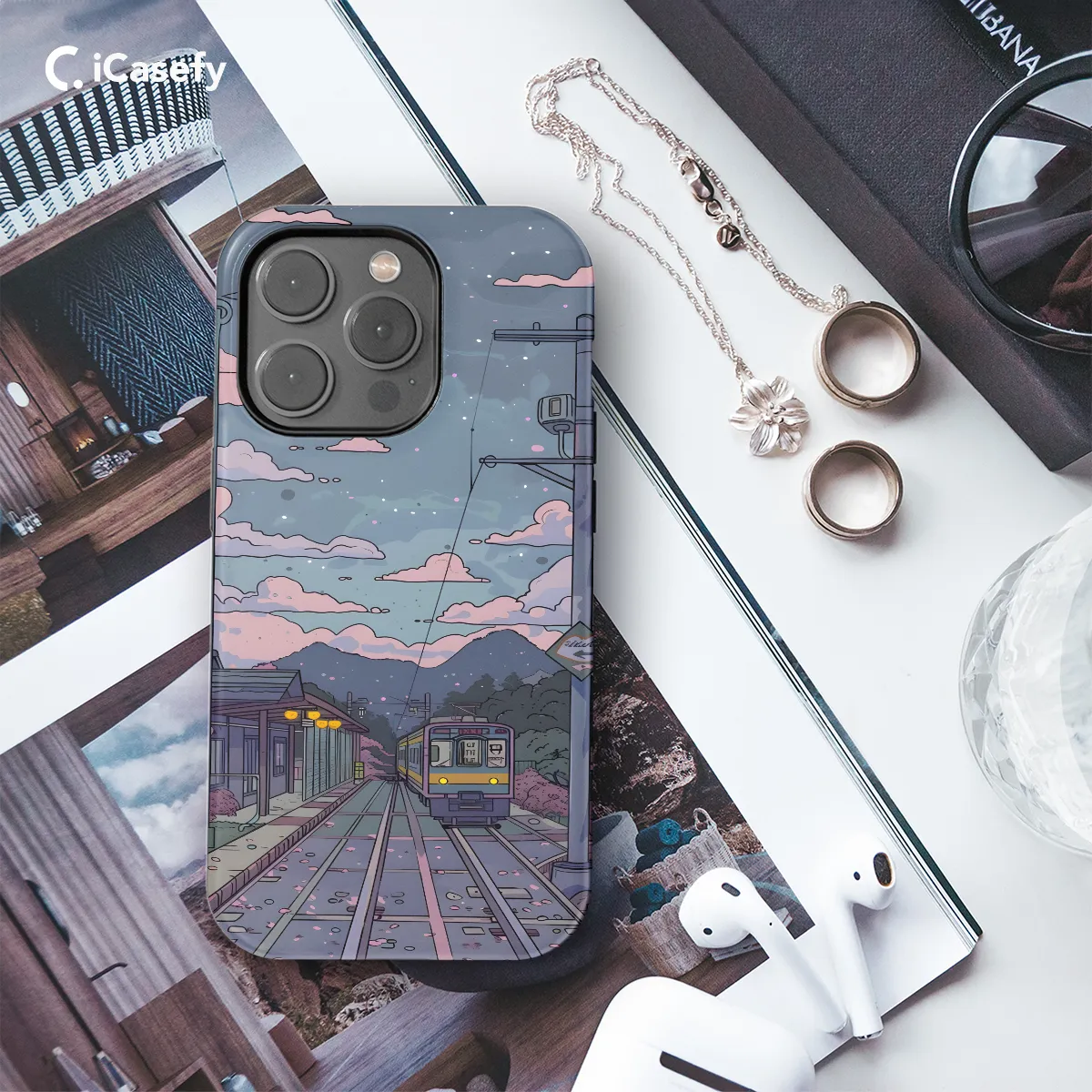 Escape into a peaceful realm with this Lofi Train Landscape Cloud Sky Phone Case. The serene design captures the ethereal beauty of a train journey under a vast sky filled with fluffy clouds. Whether you're an avid rail enthusiast or simply seeking tranquility, this case is a sanctuary for your mobile device. Its durable construction safeguards your phone, while the eye-catching artwork transports you to a world of relaxation and wonder.