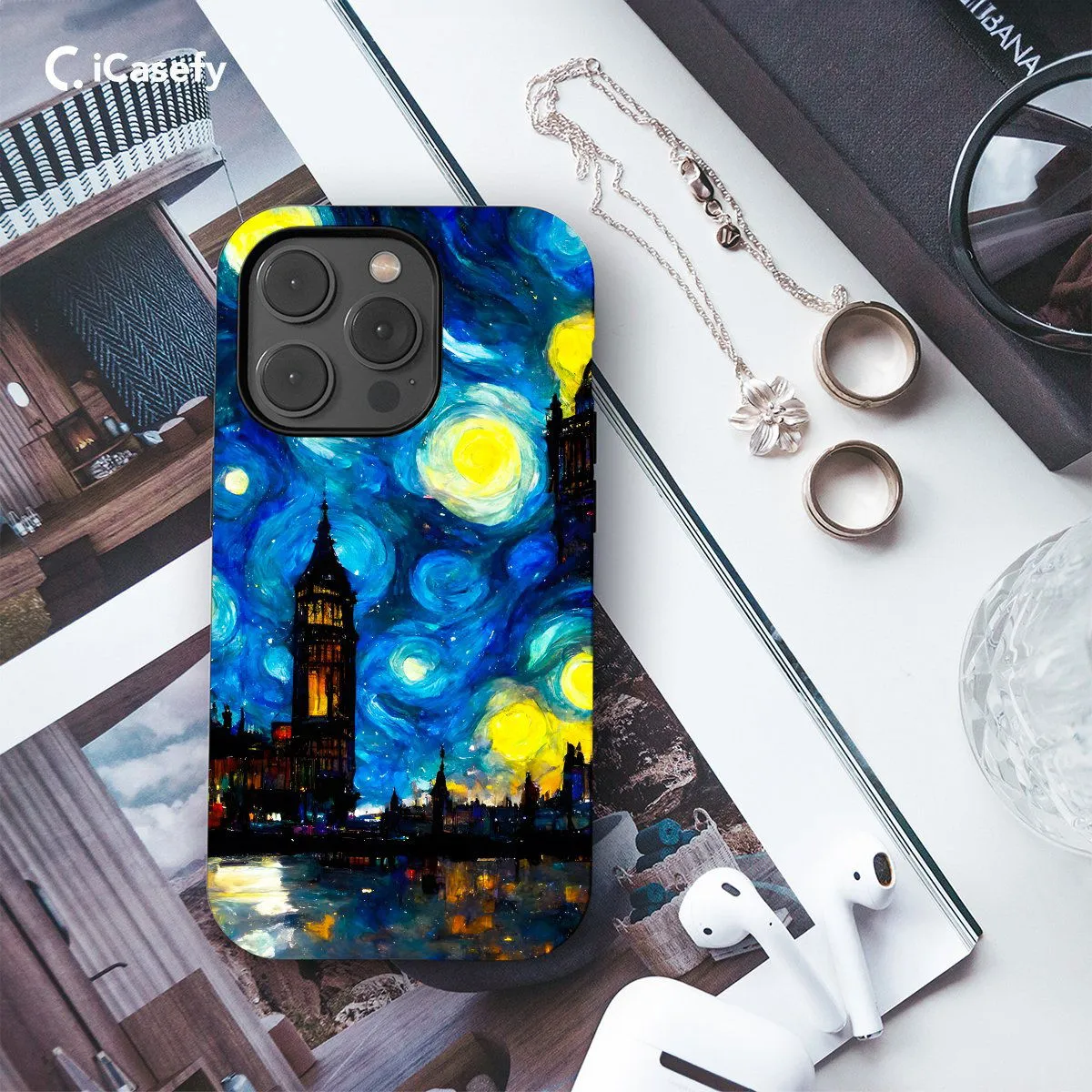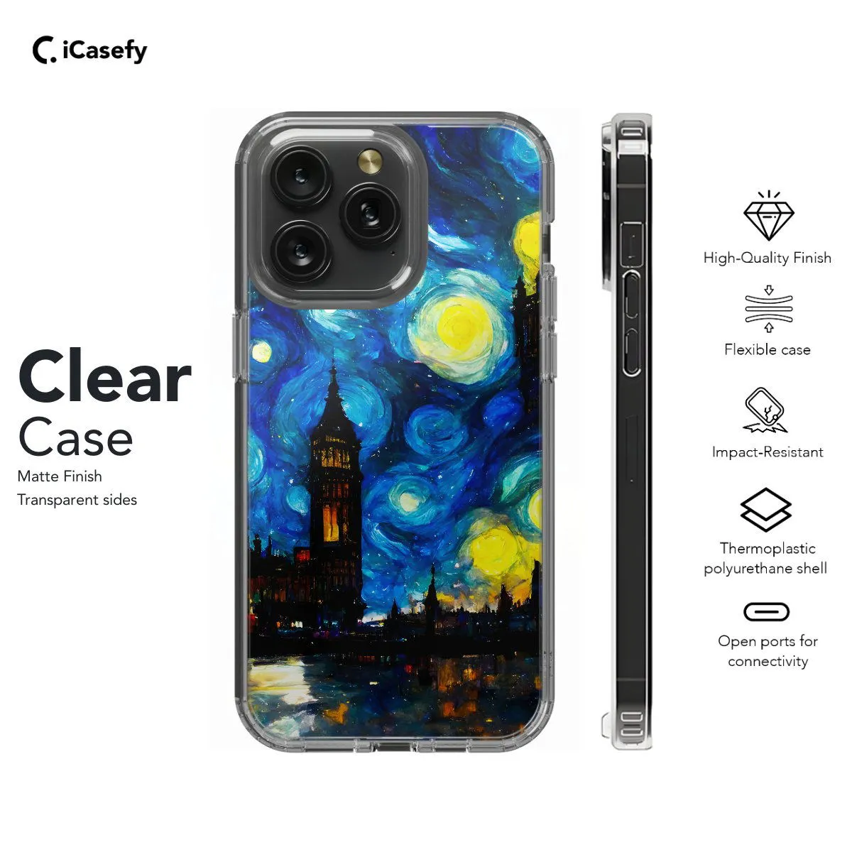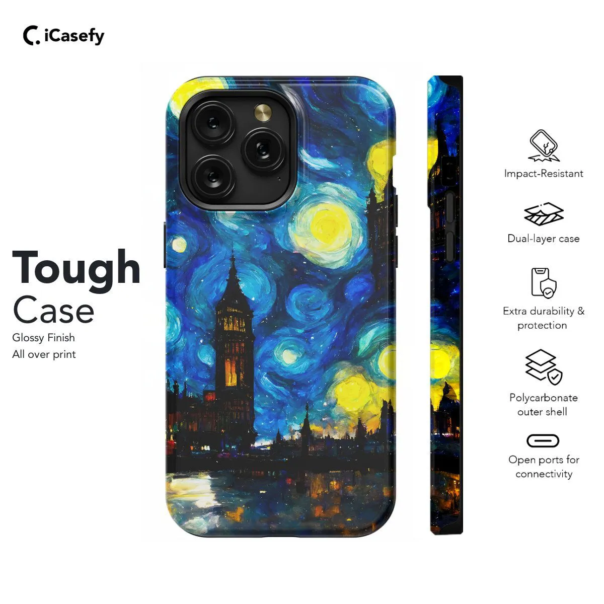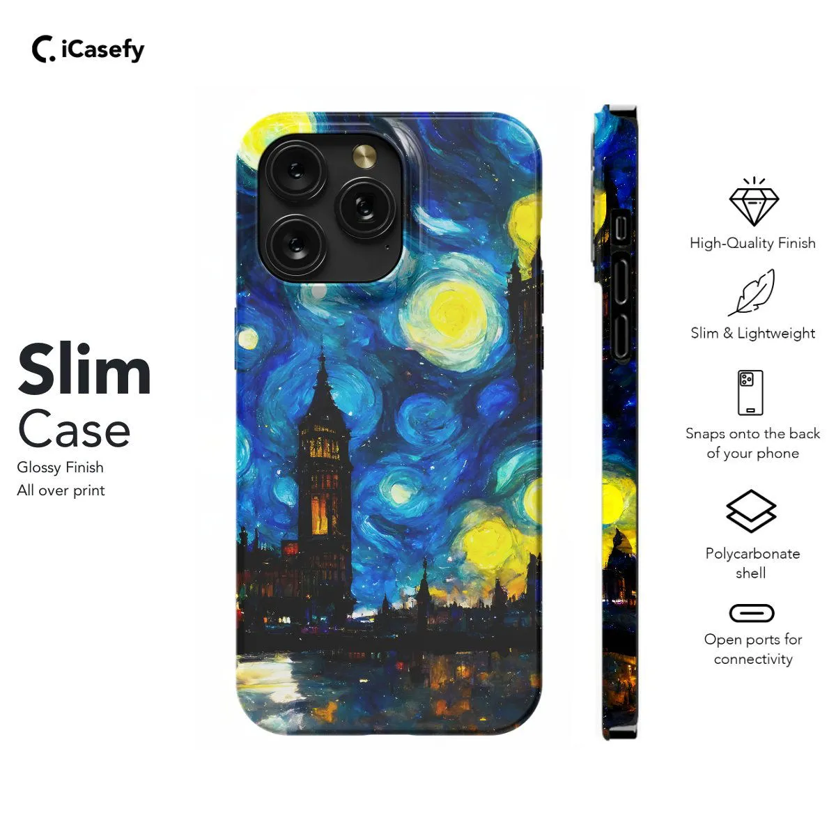 Transport yourself to the enchanting streets of London under a starry night sky with this captivating phone case inspired by Vincent van Gogh's "Starry Night Over the Rhône". Featuring the iconic swirling stars and vibrant colors reminiscent of van Gogh's masterpiece, this case brings a touch of artistic elegance to your device. Carry the beauty of London's skyline with you wherever you go and let your phone become a canvas for timeless artistry.