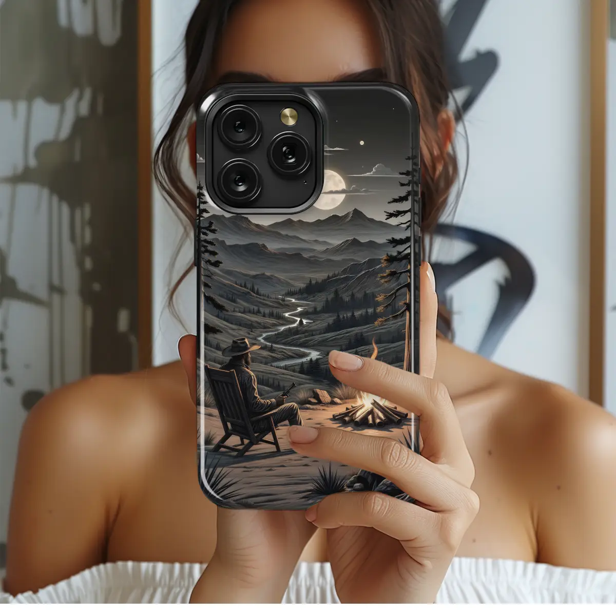 Experience the tranquility of the great outdoors with our charming Lone Cowboy Night Campfire phone case. As if you were cozying up by a flickering campfire under a starlit sky, this case evokes the serene beauty of a cowboy's night camp. Crafted from durable materials, it offers reliable protection for your phone while adding a touch of rugged adventure. Its unique design, depicting a lone cowboy sitting by a crackling campfire, captures the essence of the wild frontier, making it the perfect accessory for those who appreciate the simple joys of nature.