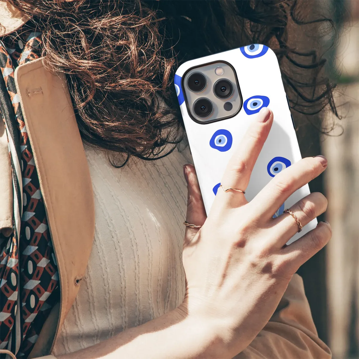 Experience the serene energy of our mystical evil eye pattern, a captivating blend of ancient symbolism and modern minimalist style. This seamless design features vibrant blue protective eyes scattered elegantly alongside delicate light blue leaves, all set against a crisp white background. The iconic Nazar symbol, steeped in centuries of tradition and belief, serves as a powerful talisman, warding off negative energy and bringing good fortune. Each evil eye is rendered with a unique, hand-drawn quality, adding an organic touch to the geometric form, while the subtle leaf motifs introduce a sense of natural calm and bohemian charm. This eye-catching arrangement creates a visually stunning print that is both spiritually significant and aesthetically pleasing. Perfect for adding a touch of protective energy and chic style to your everyday items, this exclusive digital pattern captures the essence of bohemian wanderlust and spiritual wellness. Embrace the protective gaze of this striking blue talisman, beautifully presented in a contemporary, easy-to-integrate artistic style. Whether seeking a personal amulet or simply drawn to the unique aesthetic, this captivating design offers a blend of cultural heritage and modern artistry. It’s a beautiful representation of protection and style, designed to bring a sense of peace and charm wherever you go, making your accessories uniquely yours with this spiritual print.