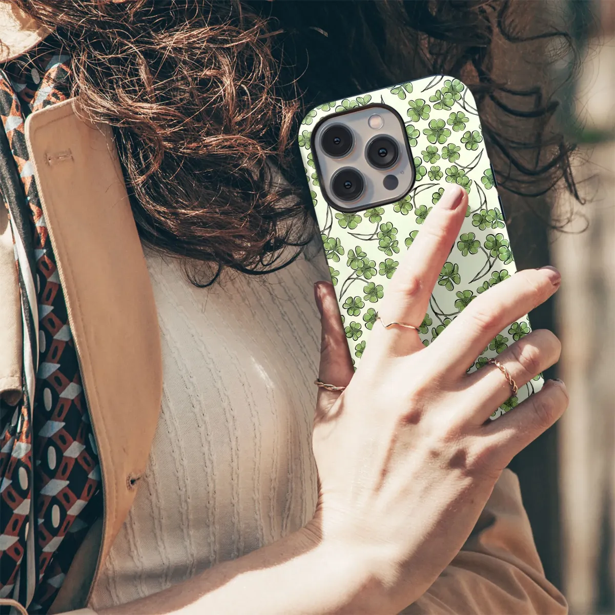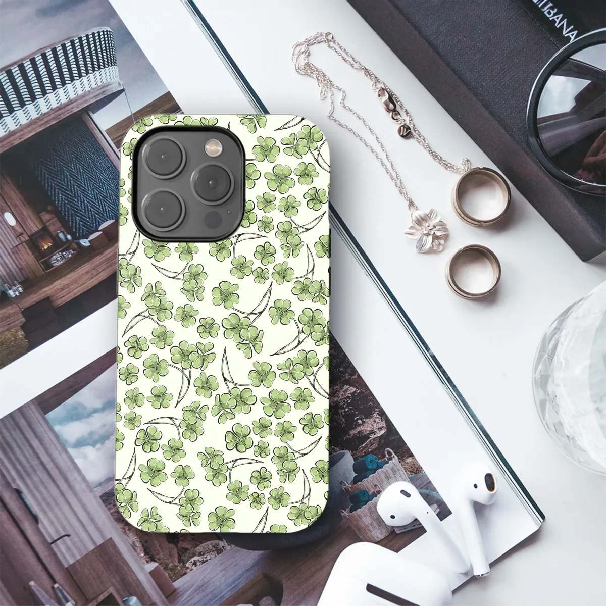 Discover the charm and whimsy of this delightful clover pattern, a lush botanical print featuring scattered green clovers and shamrocks in various sizes and orientations. This enchanting design captures the essence of nature with its fresh, hand-drawn style and vibrant emerald hues against a soft, light background, creating a serene and uplifting visual experience. Each clover is depicted with a sweet, artistic touch and delicate black stem outlines, adding depth and a touch of illustration flair, creating a feeling of natural beauty and bringing a touch of the outdoors to your everyday items. Clovers are universally recognized symbols of luck, fortune, and prosperity, making this pattern not just visually appealing but also carrying a positive and uplifting sentiment that resonates deeply. It's the perfect way to invite a little extra good luck into your life or share that positive energy with someone special through a unique artistic expression. The versatile nature of this surface design makes it ideal for transforming ordinary objects into unique statement pieces or thoughtful presents that stand out. Imagine this beautiful print adorning a cherished personal accessory you use daily, adding a pop of natural elegance and a whisper of good fortune to your routine, making it a conversation starter and a daily reminder of nature's simple beauty. Its timeless appeal and cheerful theme make it suitable for various occasions, from celebrating springtime and new beginnings to simply appreciating the simple beauty of greenery year-round. This artistic pattern brings a fresh, lively vibe, perfect for anyone who loves nature-inspired art, unique designs, or wants to carry a little piece of luck with them wherever they go. Elevate your personal style or find the perfect present with this lovely, lucky clover creation that combines aesthetic appeal with meaningful symbolism.
