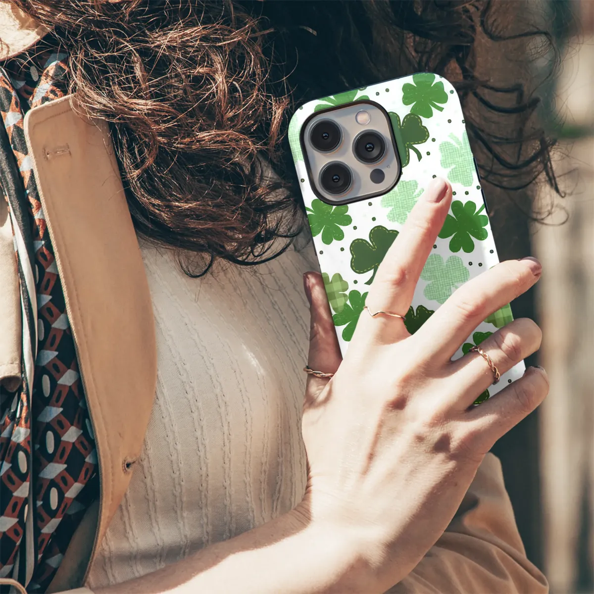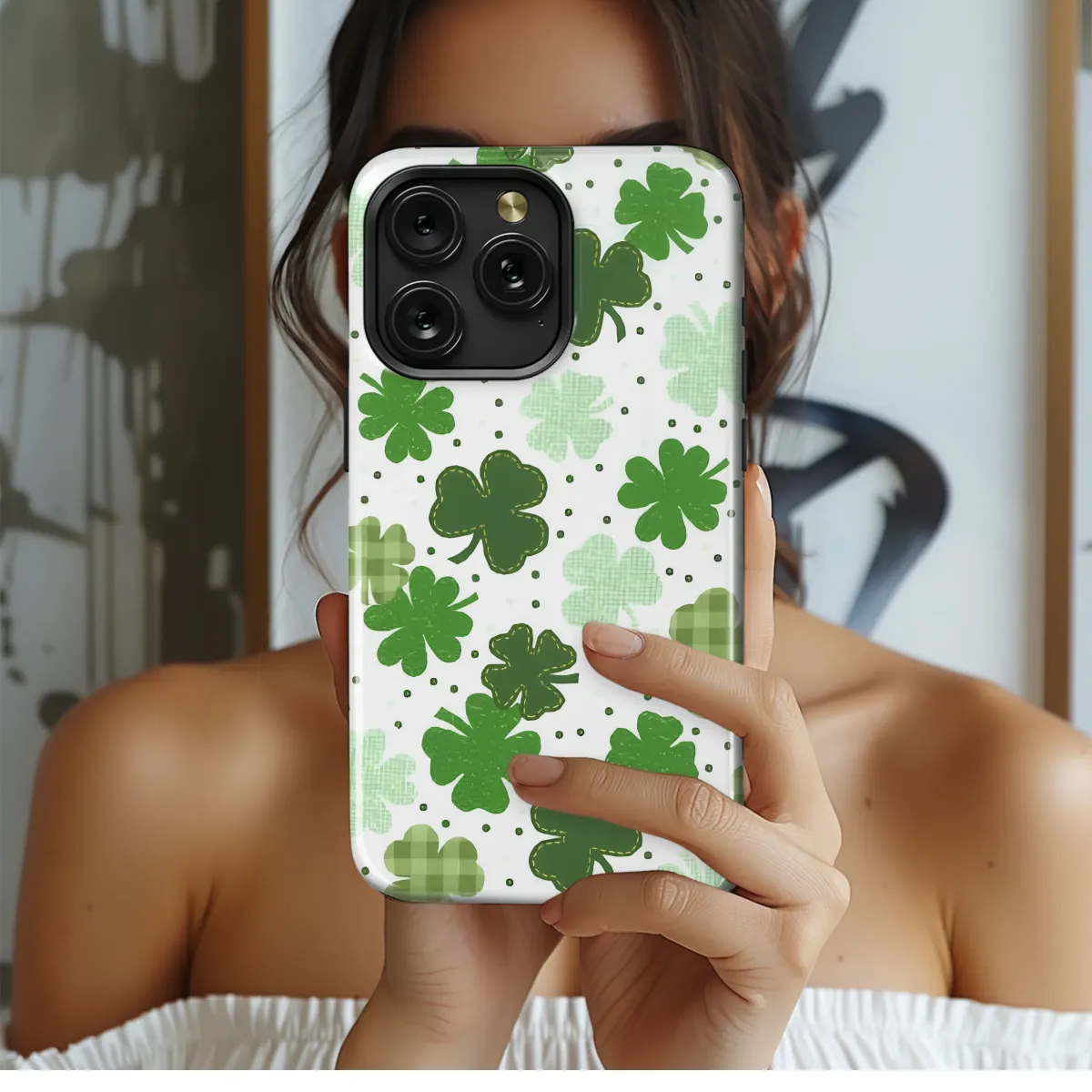 Carry a pocketful of pure luck wherever you go! This enchanting design perfectly captures the whimsical spirit of a sun-drenched clover field, bringing a touch of Irish magic and festive cheer to your daily life. Imagine a delightful cascade of shamrocks in every imaginable shade of green, from vibrant emerald and rich forest to soft mint and cheerful lime, all dancing across a crisp white background sprinkled with classic black polka dots. The incredible detail gives this artwork a heartwarming, handcrafted feel that evokes cozy feelings of comfort and nostalgia. You'll fall in love with the charming variety of textures and patterns; some clovers boast a timeless green and white gingham plaid, while others feature delicate, rustic stitched edges, reminiscent of a cherished family quilt. This design is more than just a pretty pattern; it’s a personal talisman, a wearable reminder to seek out joy and good fortune in all the small moments. It's the perfect way to celebrate St. Patrick's Day in style or for anyone who loves to adorn their world with unique, festive art. Let this beautiful pattern wrap your favorite accessory in personality and charm, making it a standout statement piece. Embrace the luck of the Irish and add a pop of vibrant, happy color to your most-used tech.