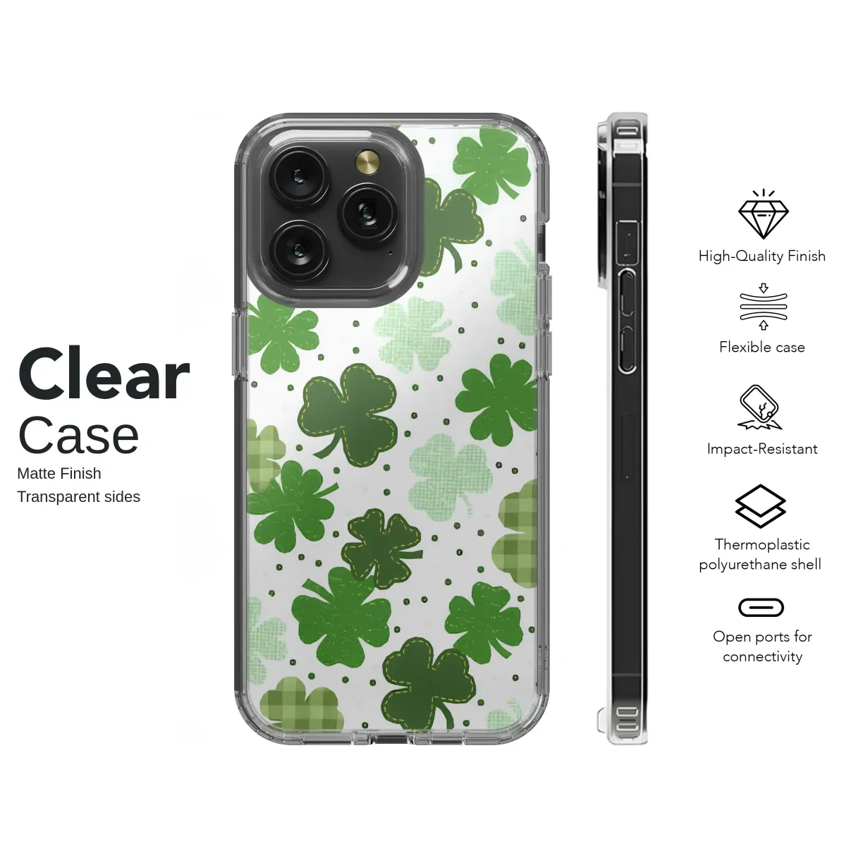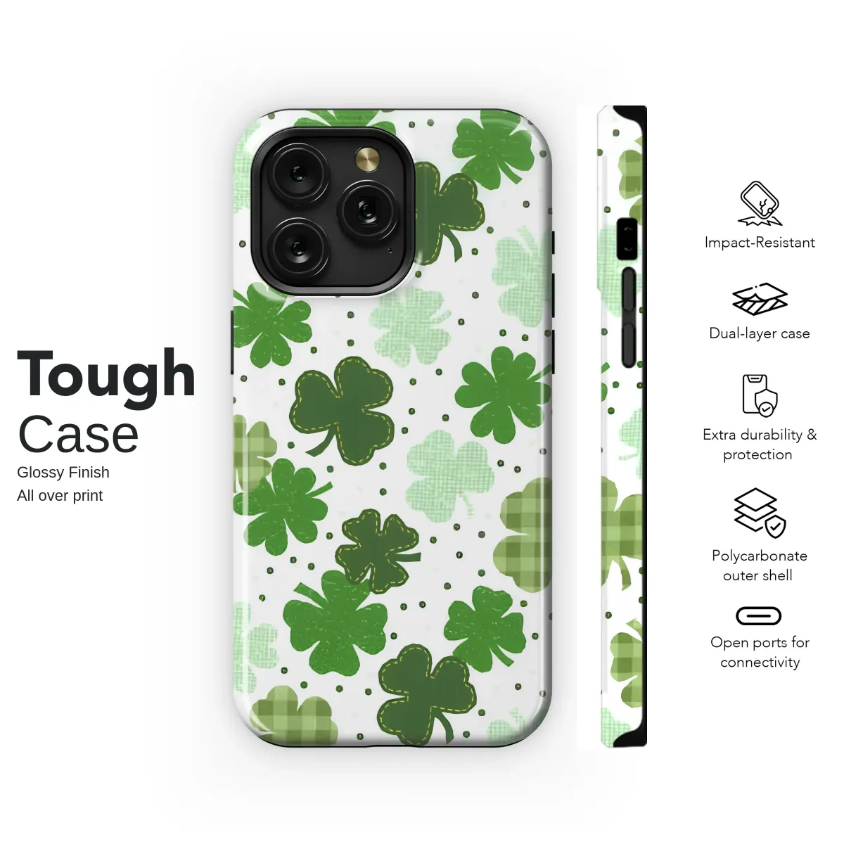 Carry a pocketful of pure luck wherever you go! This enchanting design perfectly captures the whimsical spirit of a sun-drenched clover field, bringing a touch of Irish magic and festive cheer to your daily life. Imagine a delightful cascade of shamrocks in every imaginable shade of green, from vibrant emerald and rich forest to soft mint and cheerful lime, all dancing across a crisp white background sprinkled with classic black polka dots. The incredible detail gives this artwork a heartwarming, handcrafted feel that evokes cozy feelings of comfort and nostalgia. You'll fall in love with the charming variety of textures and patterns; some clovers boast a timeless green and white gingham plaid, while others feature delicate, rustic stitched edges, reminiscent of a cherished family quilt. This design is more than just a pretty pattern; it’s a personal talisman, a wearable reminder to seek out joy and good fortune in all the small moments. It's the perfect way to celebrate St. Patrick's Day in style or for anyone who loves to adorn their world with unique, festive art. Let this beautiful pattern wrap your favorite accessory in personality and charm, making it a standout statement piece. Embrace the luck of the Irish and add a pop of vibrant, happy color to your most-used tech.