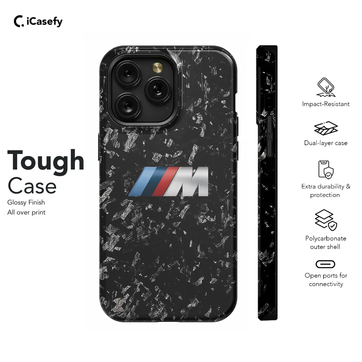Protect your phone in style with this official M Performance BMW phone case. Compatible with Samsung, Pixel, and IPhone models, this case features the iconic M Performance stripes and logo. Constructed from durable materials, it provides excellent protection from drops, bumps, and scratches. The slim profile ensures a comfortable grip, while the precise cutouts allow for easy access to all buttons and ports. Show off your love for BMW with this stylish and protective phone case.