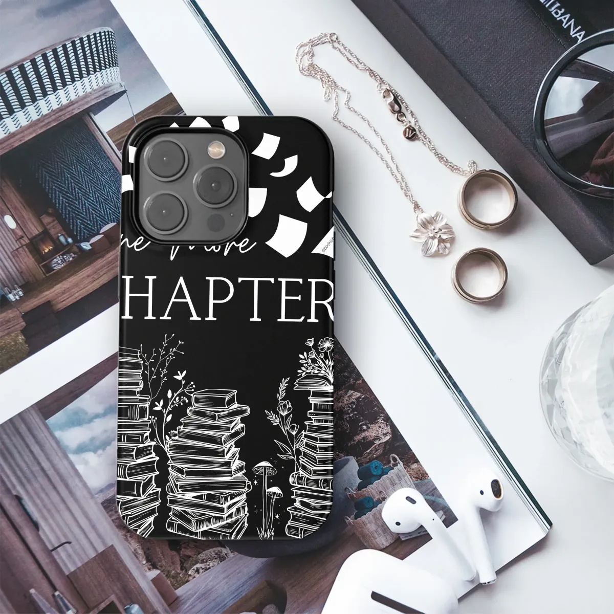 For every soul who has whispered "just one more chapter" under the soft glow of a midnight lamp, this enchanting design captures that magical, liminal space between worlds. Adorn your daily essential with a piece of art that speaks to your bibliophile heart. Towering stacks of well-loved tomes rise like ancient trees, their spines sprouting whimsical wildflowers and mystical mushrooms, a beautiful nod to both cottagecore charm and dark academia aesthetics. Above them, a cascade of swirling pages dances on an invisible breeze, a visual ode to the stories that carry us away. This isn't just an accessory; it's a wearable piece of your personal library, a constant reminder of the fantastical journeys waiting within every book. Carry the quiet magic of a late-night reading nook with you everywhere you go. It’s the perfect bookish gift for the avid reader, a treasure for your book club bestie, or a sophisticated statement for anyone who finds solace in the profound beauty of literary worlds. Let this stunning monochrome illustration be the badge of your reader identity, a stylish companion for your very own unfolding story.