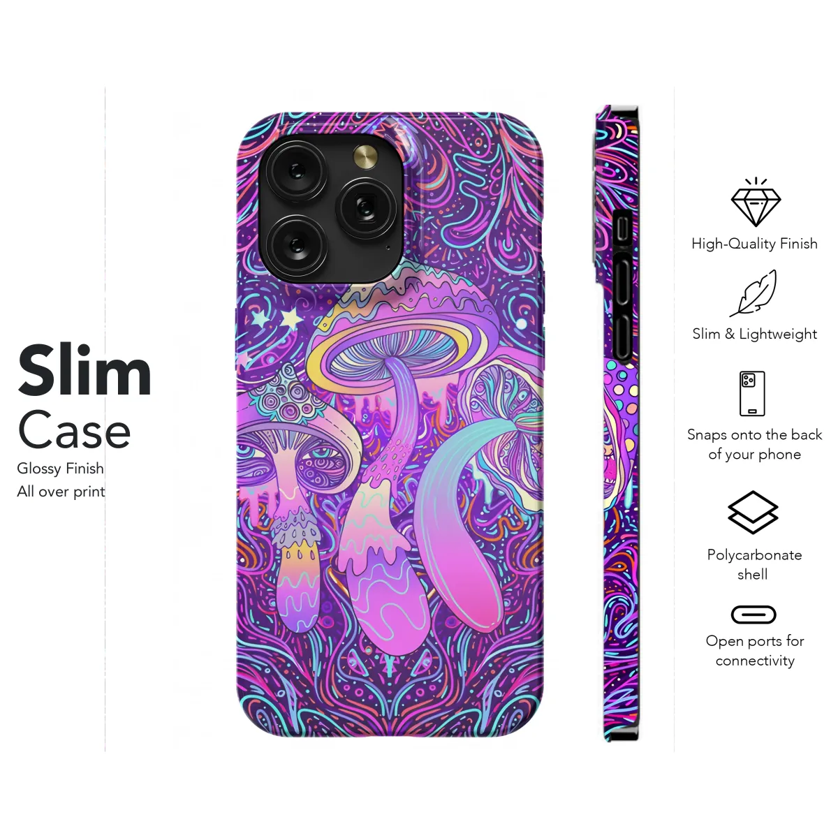 Escape into a psychedelic wonderland with our Magic Mushrooms Seamless Hippie Pattern Phone Case. This vibrant case transforms your device into a canvas of ethereal beauty, adorned with an intricate pattern of swirling mushrooms. Its seamless design ensures a perfect fit, while the durable material protects your phone from everyday adventures. Embrace the free-spirited vibes and let your phone case inspire your inner hippie.