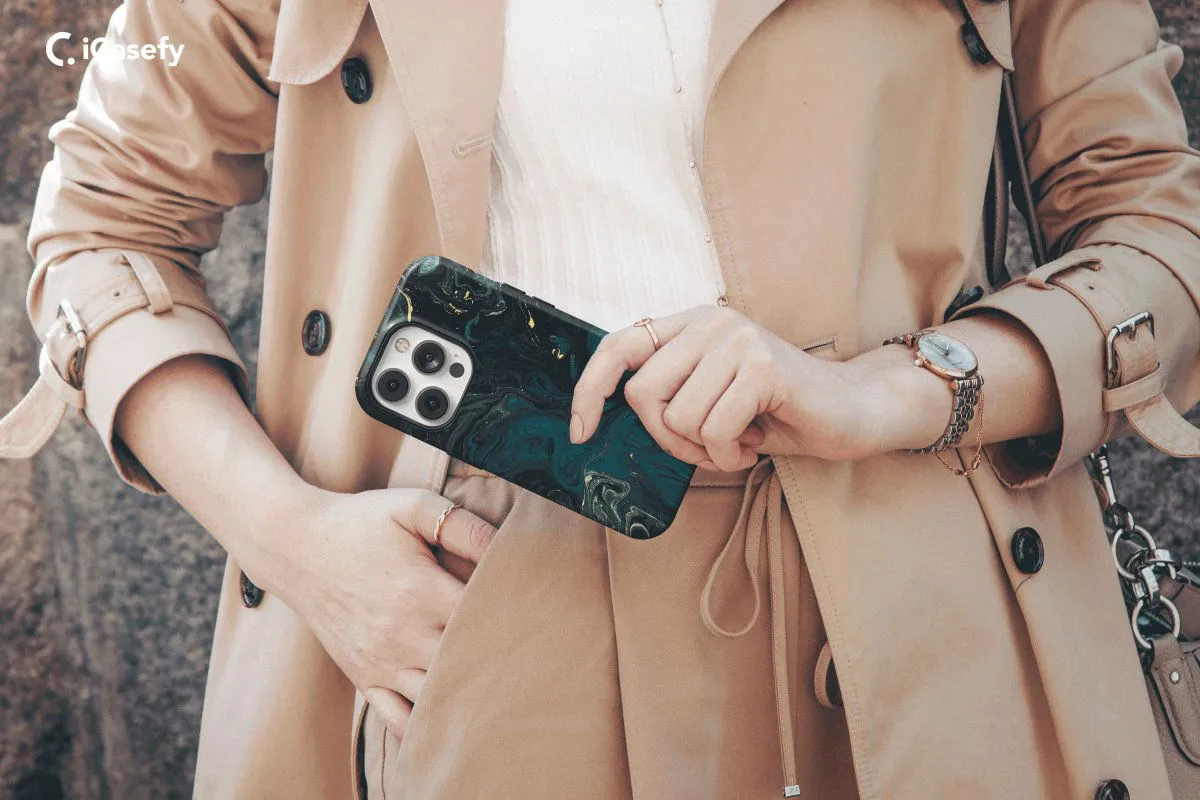 Elevate your phone's style with our exquisite Marble Phone Case adorned with glitter accents in cyan, black, and gold. This unique and glamorous cover not only adds a touch of sophistication to your device but also ensures superior protection against everyday wear and tear.