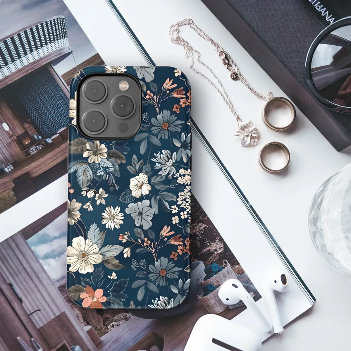 Elevate your style with this exquisite floral design, a captivating tapestry of blooming elegance. Rich, deep navy provides a luxurious backdrop for a breathtaking array of blossoms in muted blues, creams, and subtle pops of coral. Intricate details and a painterly texture bring depth and sophistication to this enchanting print, perfect for adding a touch of refined artistry to your everyday life. This design features a stunning, densely packed floral pattern, showcasing a multitude of meticulously rendered blooms and leaves. From delicate wildflowers to larger, show-stopping blossoms, each element is crafted with precision and artistry. The color palette is thoughtfully curated to create a cohesive and harmonious visual experience, while maintaining a sense of vibrancy and visual interest. This timeless design is guaranteed to be a conversation starter, turning heads wherever you go. Showcase your impeccable taste with this unique and unforgettable piece, a true testament to artistic expression and individual style. This design is printed using high-quality inks for vibrant, long-lasting color and detail. Order yours today and experience the beauty!