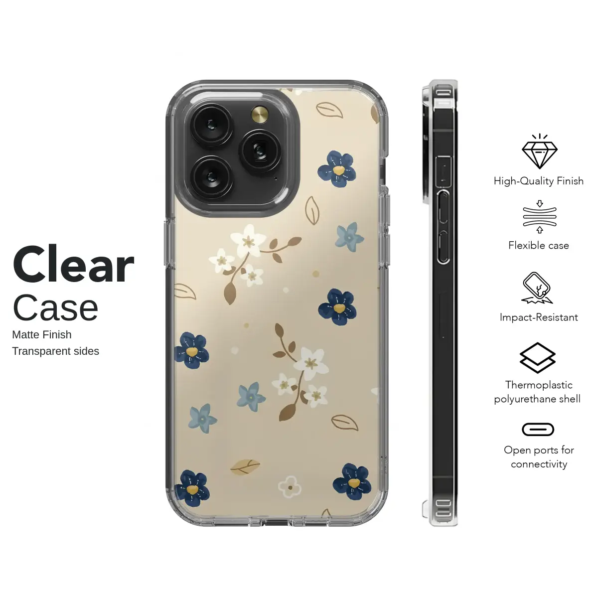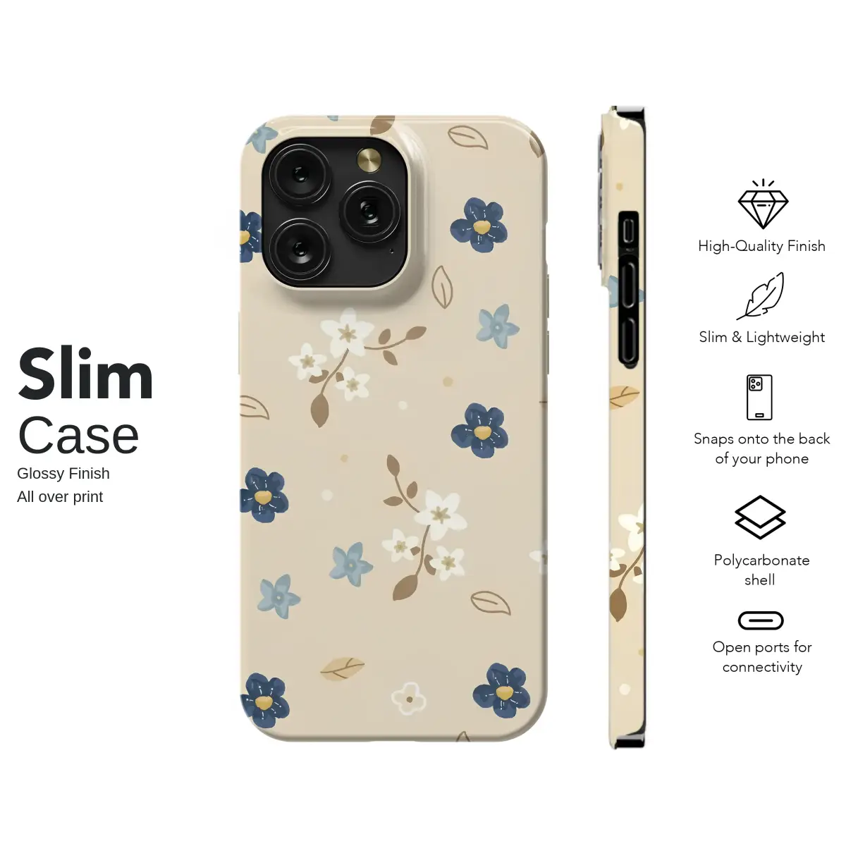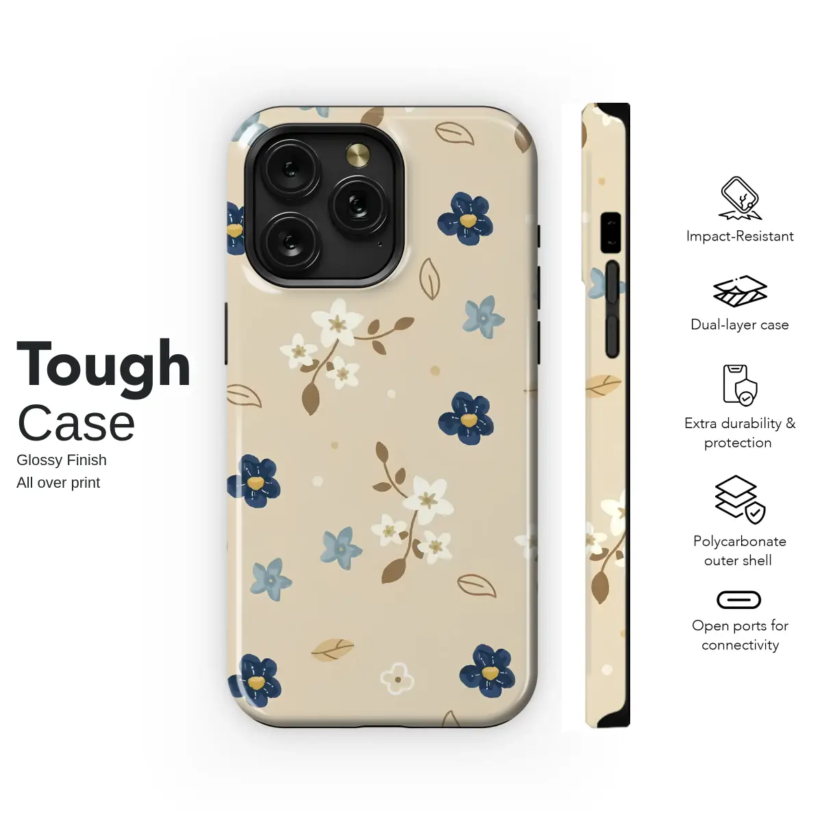 Carry a secret garden right in the palm of your hand with this enchanting floral design. Delicate blossoms in deep sapphire and soft sky blue drift across a warm, creamy latte background, reminiscent of a cherished vintage storybook or a sun-drenched afternoon in a quiet meadow. Tiny white star-like flowers cluster on earthy brown branches, while whimsical outlines of leaves and charming polka dots dance between them, creating a gentle, scattered-meadow effect. This botanical design is the epitome of cottagecore charm, perfect for anyone who loves a touch of nature-inspired, minimalist elegance. It's more than just an accessory; it’s a piece of art that brings a sense of calm and rustic beauty to your most essential daily companion. Let this beautiful and durable cover be a daily reminder of quiet moments, protecting your tech with a touch of whimsical artistry. This aesthetic floral shell makes a thoughtful gift for her, a best friend, or anyone who wants to infuse their day with the serene spirit of a wildflower field.
