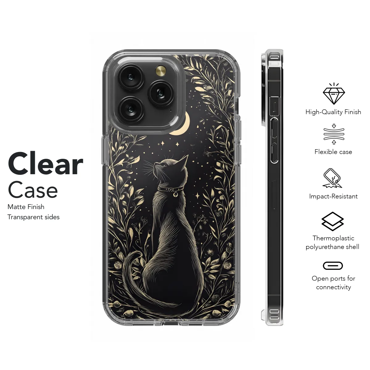 Unleash the enchanting power of the midnight sky with this mesmerizing phone case. Adorned with a captivating moonlit cat, this ethereal design evokes a mystical and captivating aura. Let the celestial magic of the moon guide your phone through the digital realm, protected by the watchful eye of our feline companion. Its sleek and durable design ensures both style and peace of mind, keeping your precious device safe from harm. Embrace the enigmatic beauty of the night with this Midnight Cat Moon Magic phone case.