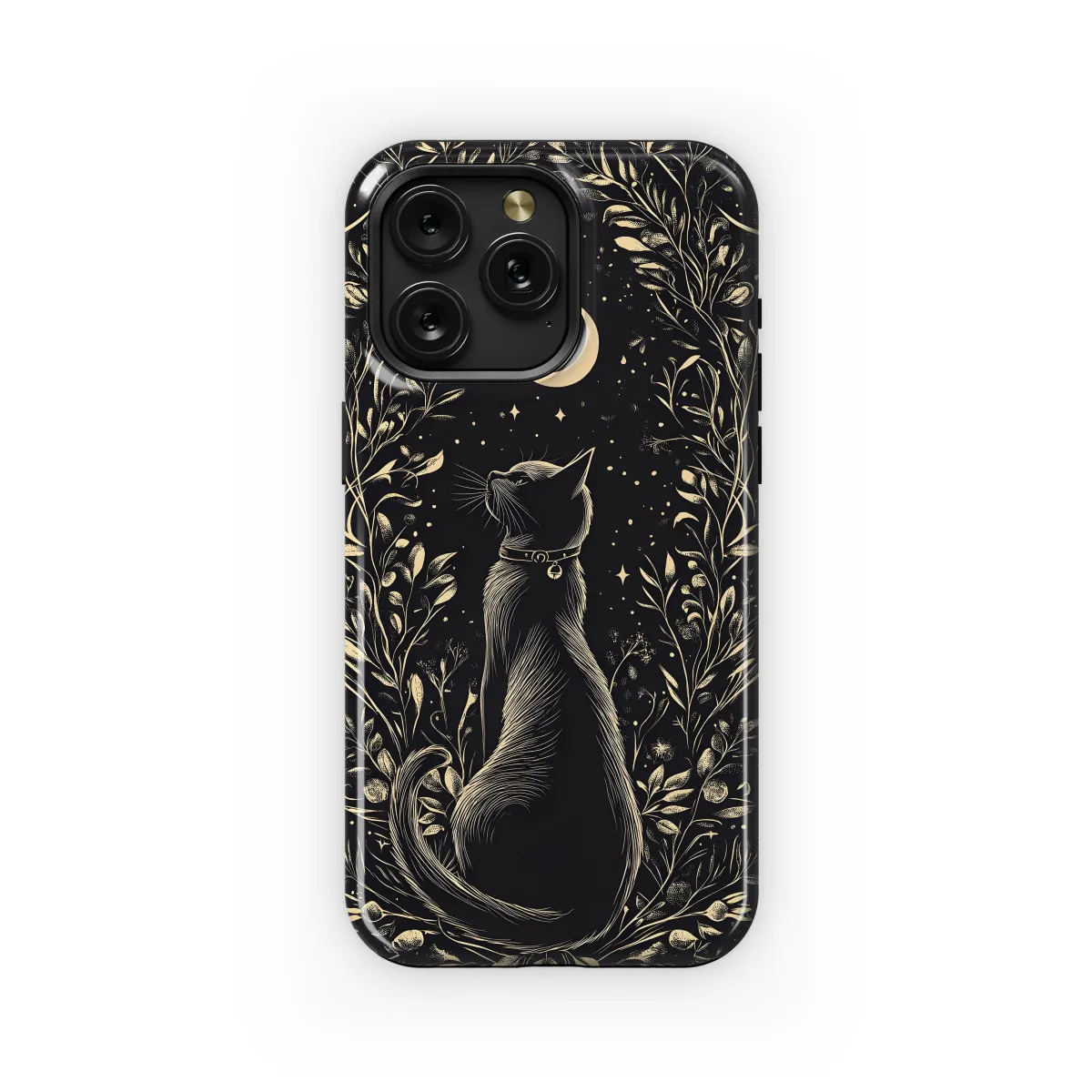 Unleash the enchanting power of the midnight sky with this mesmerizing phone case. Adorned with a captivating moonlit cat, this ethereal design evokes a mystical and captivating aura. Let the celestial magic of the moon guide your phone through the digital realm, protected by the watchful eye of our feline companion. Its sleek and durable design ensures both style and peace of mind, keeping your precious device safe from harm. Embrace the enigmatic beauty of the night with this Midnight Cat Moon Magic phone case.