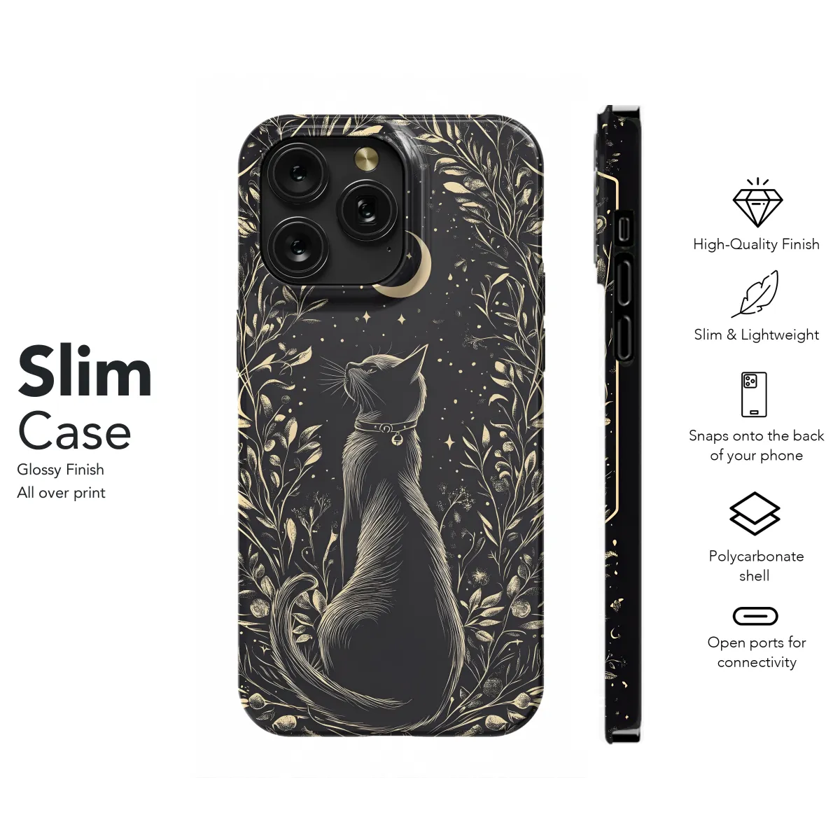 Unleash the enchanting power of the midnight sky with this mesmerizing phone case. Adorned with a captivating moonlit cat, this ethereal design evokes a mystical and captivating aura. Let the celestial magic of the moon guide your phone through the digital realm, protected by the watchful eye of our feline companion. Its sleek and durable design ensures both style and peace of mind, keeping your precious device safe from harm. Embrace the enigmatic beauty of the night with this Midnight Cat Moon Magic phone case.