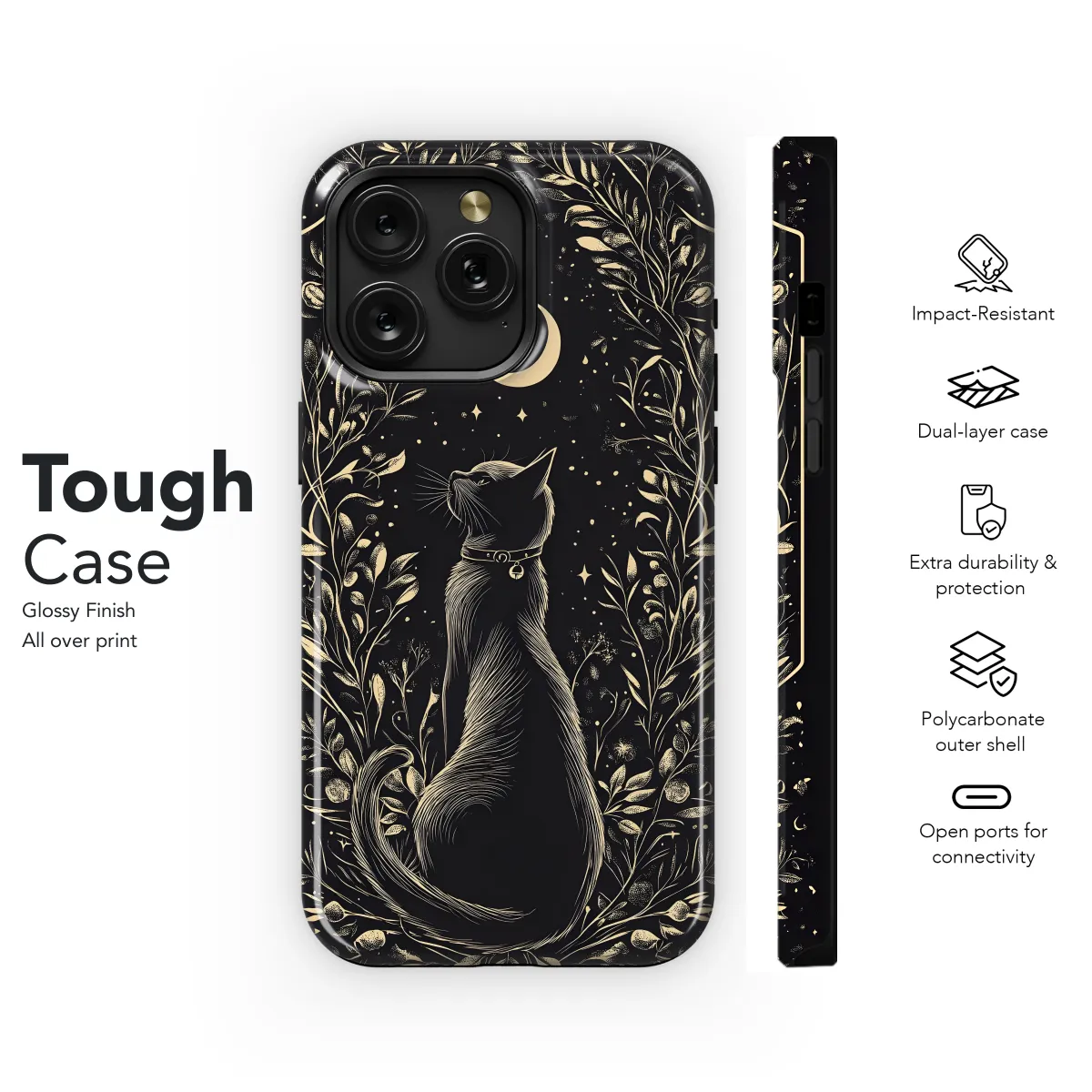 Unleash the enchanting power of the midnight sky with this mesmerizing phone case. Adorned with a captivating moonlit cat, this ethereal design evokes a mystical and captivating aura. Let the celestial magic of the moon guide your phone through the digital realm, protected by the watchful eye of our feline companion. Its sleek and durable design ensures both style and peace of mind, keeping your precious device safe from harm. Embrace the enigmatic beauty of the night with this Midnight Cat Moon Magic phone case.