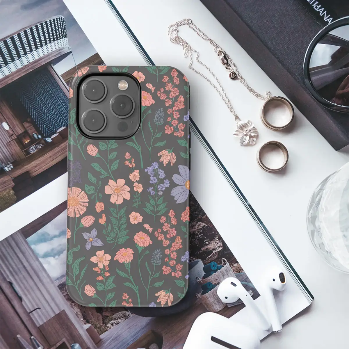 Immerse yourself in the quiet magic of a midnight meadow with this enchanting botanical design. Imagine strolling through a secret garden at dusk, where the air is cool and the only light comes from the moon, illuminating a tapestry of wildflowers. This captivating artwork brings that moment to life on a deep, moody charcoal canvas, creating a stunning contrast for the delicate blossoms. Each flower is rendered in a beautifully illustrated, vintage style, featuring a sophisticated palette of dusty rose, warm coral, soft periwinkle, and muted lavender. Rich, dark green stems and leaves gracefully intertwine, adding depth and a sense of untamed, natural elegance. This dark floral pattern is more than just a pretty design; it’s an escape. It’s for the lover of romantic cottagecore, the dreamer who finds beauty in the wild, and the artistic soul who wants their everyday essentials to reflect their unique style. Carry this piece of botanical art with you and let it be a daily reminder of nature's serene and mysterious beauty. An ideal nature lover gift or a special treat for yourself, this design transforms any accessory into a wearable masterpiece, whispering stories of twilight blooms and forgotten gardens.