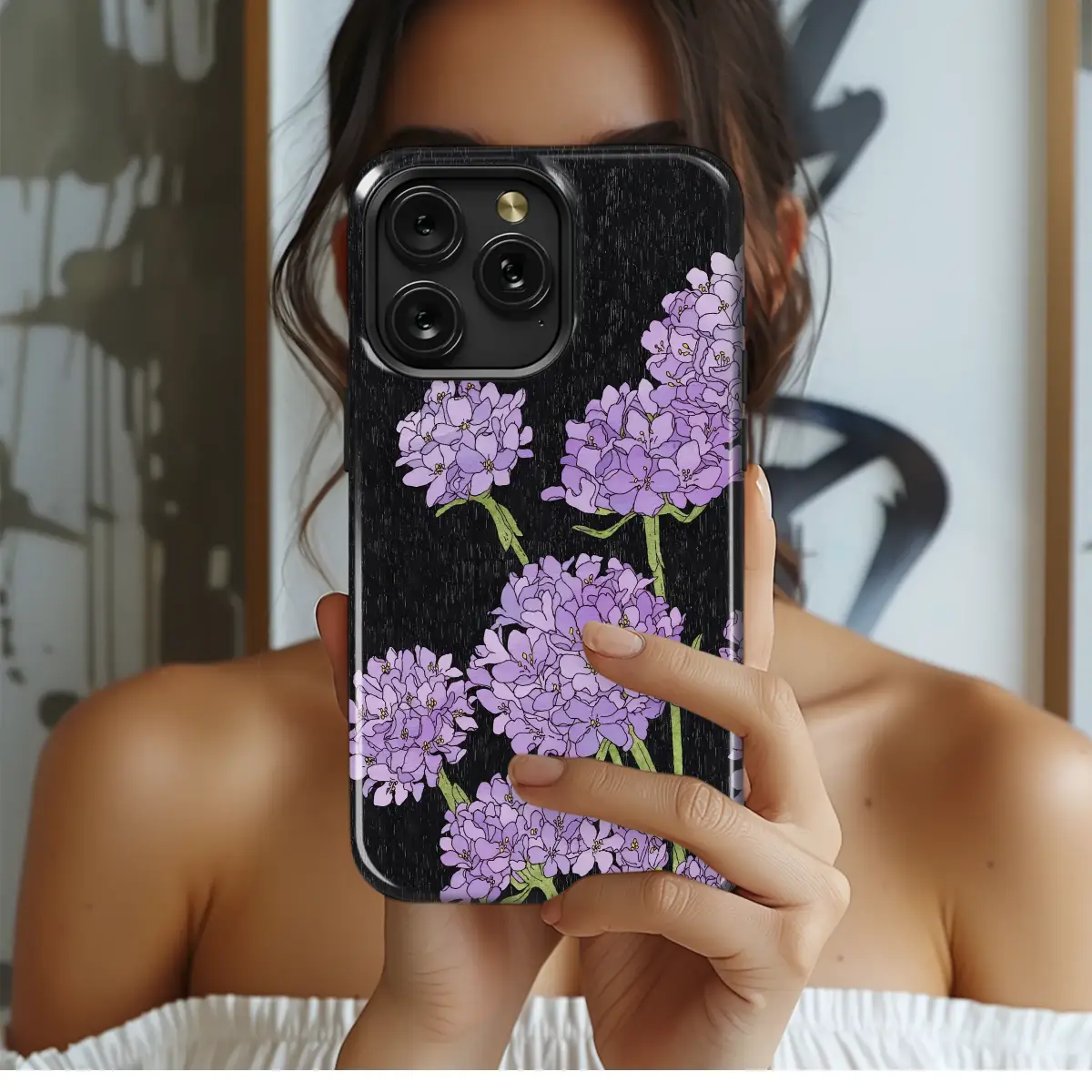 Immerse yourself in the quiet magic of a secret garden cloaked in midnight elegance. This captivating artwork captures the delicate beauty of lilac verbena blooms, rendered in a dreamy watercolor palette of soft lavender and rich purple hues, standing in serene defiance against a stark, textured black canvas. Each cluster of tiny petals is meticulously outlined with fine linework, evoking the timeless charm of a classical botanical woodblock print or a treasured vintage illustration. The deep, inky background, etched with subtle vertical lines like a gentle night rain or the grain of dark wood, makes the vibrant florals pop with an almost magical luminescence, creating a stunning visual contrast. This design is a celebration of nature's most tranquil moments, a perfect fusion of moody, dark academia aesthetics with the gentle, romantic pull of a cottagecore dream. It’s more than just a pattern; it’s a piece of wearable art that whispers tales of moonlit strolls and forgotten floral spells. Let this enchanting illustration transform your everyday essential into an object of unique beauty, a personal statement that carries the serene and mysterious spirit of a wild, nocturnal garden with you, turning the mundane into a moment of artistic expression. It's an ideal and thoughtful gift for the nature lover, the dreamer, the artist, and anyone who finds profound beauty in the dance between light and shadows.