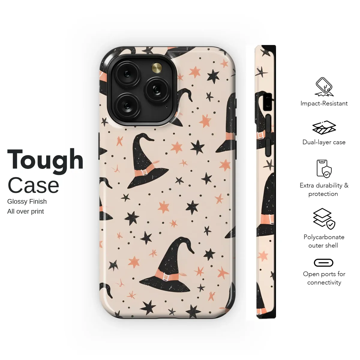 Embrace the enchanting whisper of autumn with this captivating design, a tribute to the magic of the spooky season. Against a creamy, twilight-hued canvas, a delightful constellation of witch hats tumbles through the air. Each pointed hat is rendered in a deep, textured black, evoking the feel of aged grimoires, and is cinched with a soft, peachy-orange ribbon that glows like a harvest moon. They dance among a whimsical scatter of celestial stars, some mirroring that same warm autumn light while others are as dark as the midnight sky itself. This enchanting illustrated pattern perfectly captures the cozy, mystical feeling of a crisp October evening, blending rustic charm with a touch of light academia and cottagecore aesthetic. It’s a beautiful tribute for anyone who finds magic in the changing seasons, loves the scent of cinnamon and spice, and carries a little bit of enchantment with them everywhere they go. Let this unique artwork be your daily companion, a subtle nod to your inner witch and a celebration of all things wonderfully weird and magical. A perfect accessory for the modern mystic or a thoughtful witchy gift, this design adds a sprinkle of starry night charm to your most essential item.
