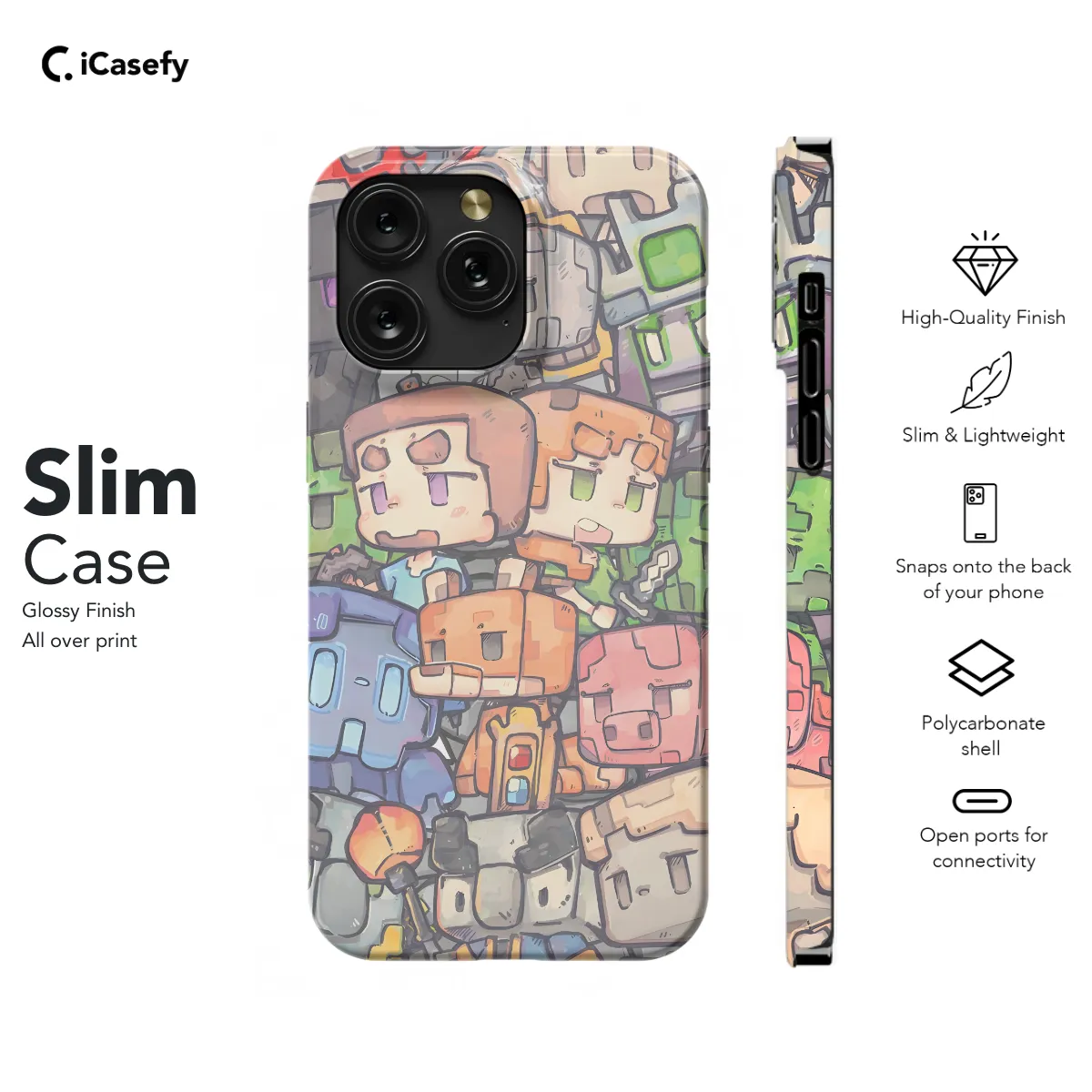 **Minecraft Phone Case** Protect your precious iPhone, Samsung, or Pixel smartphone with our epic Minecraft phone case! Inspired by the beloved video game, this durable case features: * Premium material for ultimate protection against drops and scratches * Intricate Minecraft-themed design that immerses you in the virtual world * Perfect fit for your specific phone model, ensuring a snug and secure grip * Raised edges to safeguard your screen and camera * Vibrant colors and graphics that bring the game to life Charge into the digital realm with our Minecraft phone case and elevate your mobile experience to the next level!