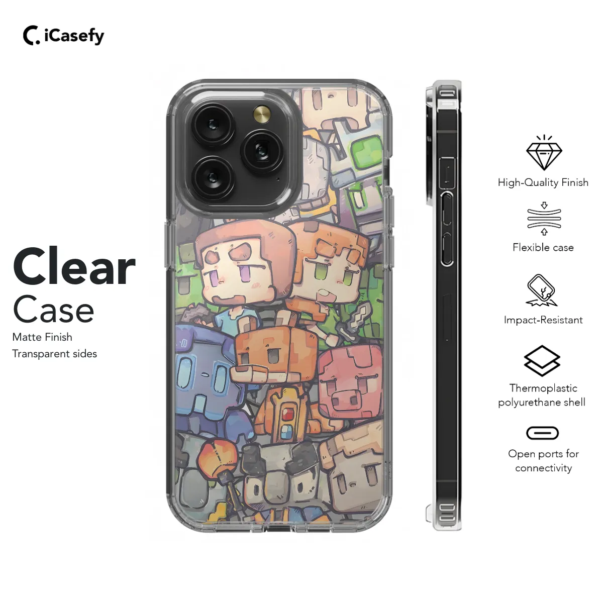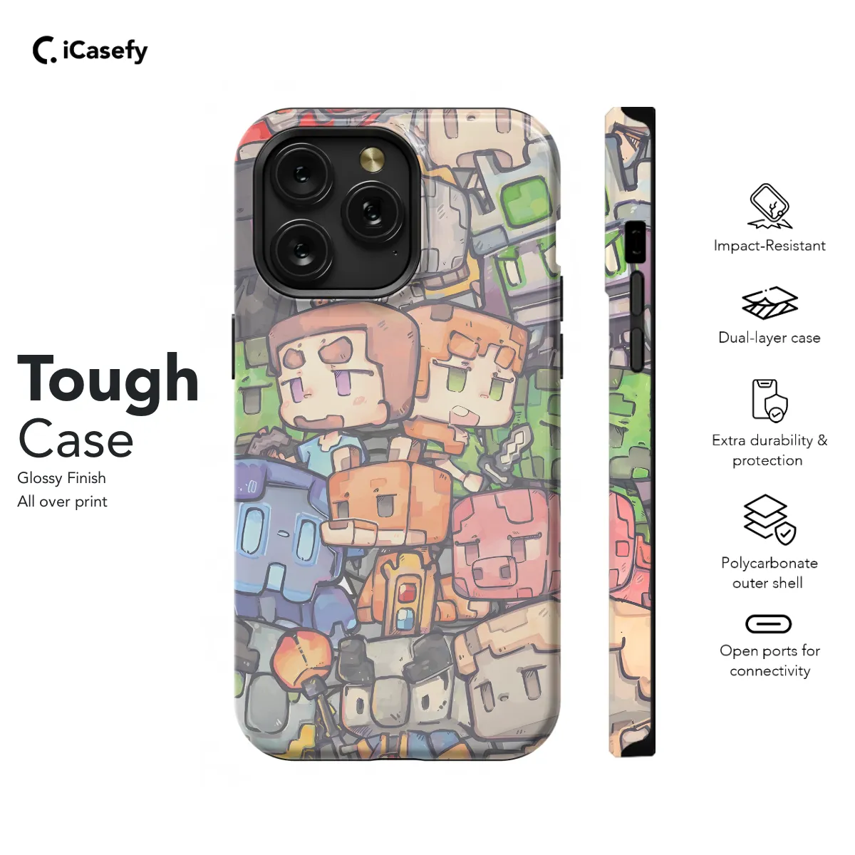 **Minecraft Phone Case** Protect your precious iPhone, Samsung, or Pixel smartphone with our epic Minecraft phone case! Inspired by the beloved video game, this durable case features: * Premium material for ultimate protection against drops and scratches * Intricate Minecraft-themed design that immerses you in the virtual world * Perfect fit for your specific phone model, ensuring a snug and secure grip * Raised edges to safeguard your screen and camera * Vibrant colors and graphics that bring the game to life Charge into the digital realm with our Minecraft phone case and elevate your mobile experience to the next level!