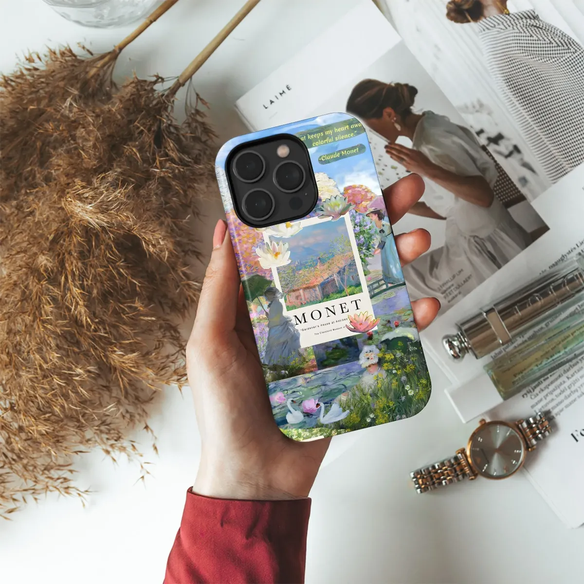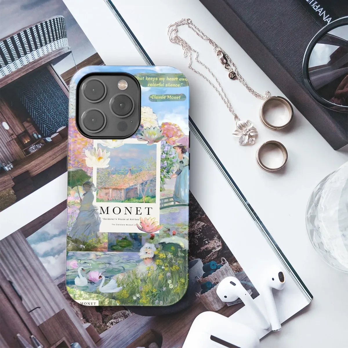 Wrap your device in the timeless beauty of Impressionism with this stunning artwork-inspired skin. Featuring a curated collage of Claude Monet's masterpieces, this design brings the serene landscapes and luminous colors of his paintings to your everyday life. Adorned with iconic scenes of water lilies, elegant ladies with parasols, and vibrant gardens, alongside his thoughtful quote, "What keeps my heart awake is colorful silence," this accessory becomes a portable gallery. Perfect for art lovers, museum enthusiasts, and anyone who appreciates the delicate beauty of Impressionist art, this aesthetic cover transforms your device into a unique statement piece. Express your individuality and love for fine art with this protective and visually captivating covering, ideal for adding a touch of sophistication and artistic flair to your tech essentials. Explore the world of Monet and carry a piece of art history in your pocket. Keywords: Art-inspired, Impressionism, Claude Monet, water lilies, fine art, aesthetic accessory, garden, museum gift, artistic, landscape, decorative cover.