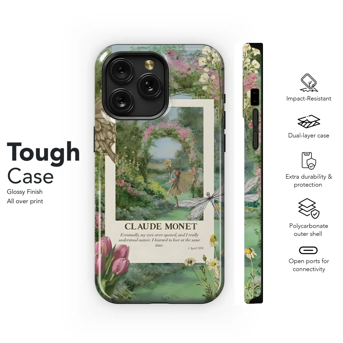 Transform your device into a work of art with this enchanting design inspired by Claude Monet's love of nature. Featuring a whimsical fairy tending a flower-filled garden, delicate butterflies, a graceful dragonfly, and a vibrant bouquet of tulips, this design captures the essence of Impressionist beauty. The vintage aesthetic and soft color palette lend a touch of timeless elegance to your everyday carry. Perfect for art lovers, nature enthusiasts, and those who appreciate a touch of magic, this floral garden scene will bring joy and inspiration to your day. Let this garden artwork protect and adorn your tech, a unique blend of fine art and practical function. This unique design is perfect for garden lovers, art fans and fairy fans looking to add a personalized touch to their favorite accessory, an ideal gift for her. Adorned with butterflies, dragonflies and flowers.