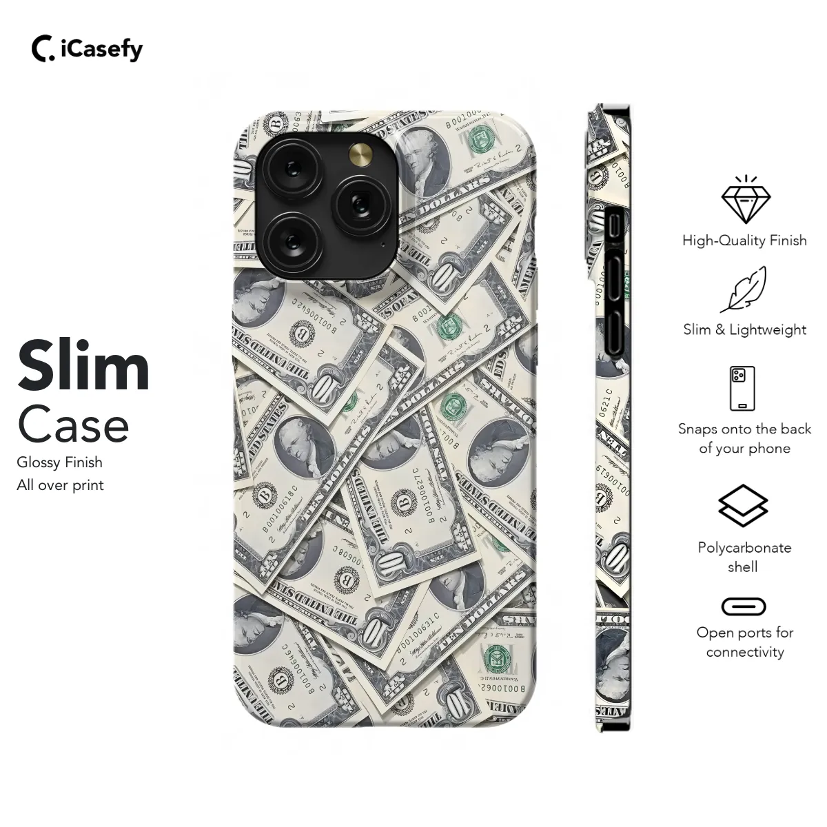 **Protect Your Money and Phone with Style** Our premium Money Dollar Phone Case is the perfect combination of functionality and fashion. With its unique money-themed design, it not only protects your phone from scratches and bumps but also adds a touch of sophistication to your style. **Universal Compatibility:** Our cases are compatible with a wide range of iPhone, Samsung, and Pixel models, so you can enjoy the perfect fit for your device. **Durable Construction:** Made from high-quality materials, our phone cases are designed to last and provide your phone with the ultimate protection. **Features:** * Money-themed design * Universal compatibility * Scratch and bump protection * Slim and lightweight * Easy to install and remove Upgrade your phone case today with our Money Dollar Phone Case, where style meets protection.
