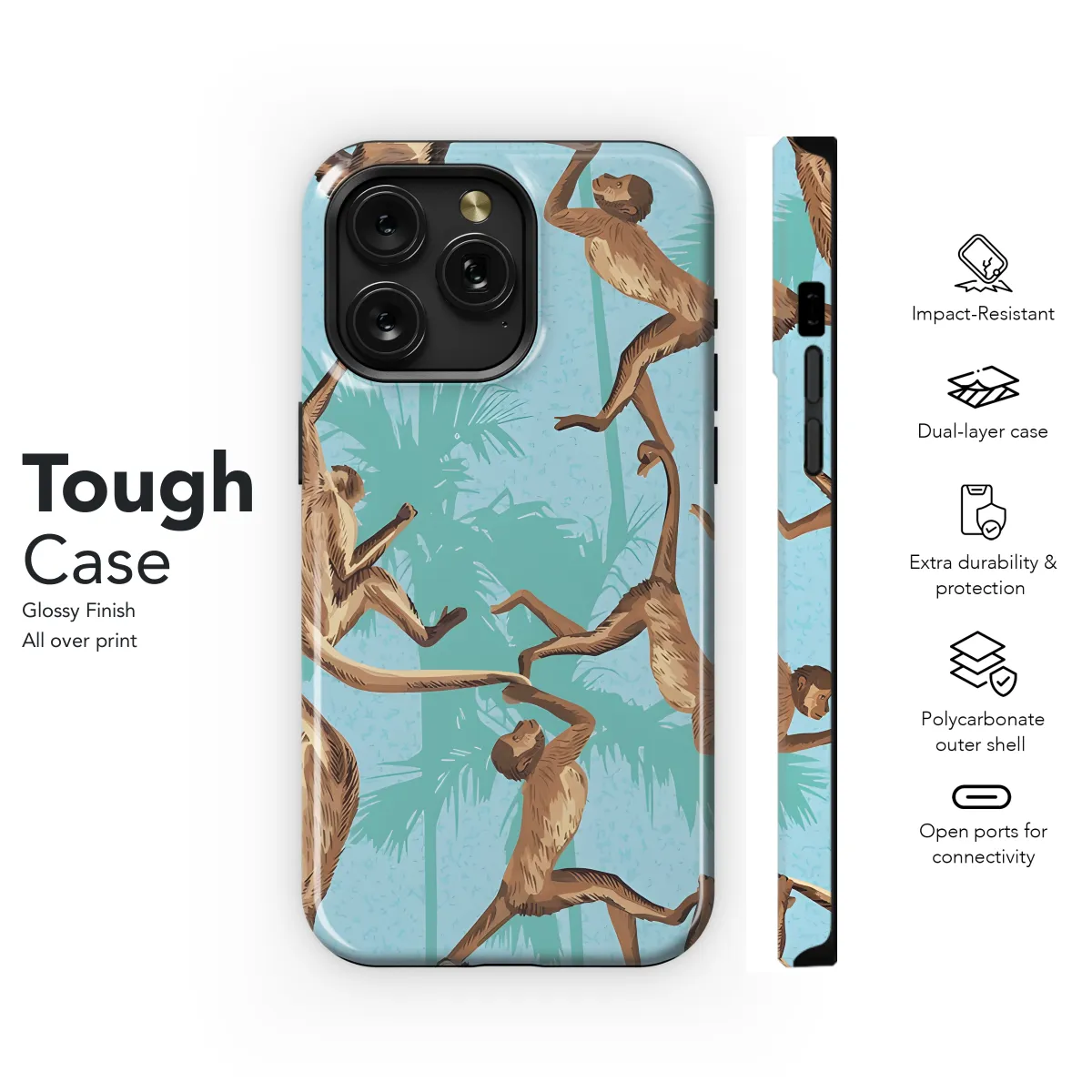 Introducing the Monkey Jungle phone case – a vibrant and playful accessory to protect your precious device. Crafted from durable materials, this case shields your phone from bumps, scratches, and everyday wear and tear. Its unique and eye-catching monkey jungle design adds a touch of whimsy to your phone, while the precise cutouts ensure easy access to all ports and buttons. Compatible with a range of iPhone, Samsung, and Pixel models, this case is the perfect choice for anyone who wants to keep their phone safe and stylish.