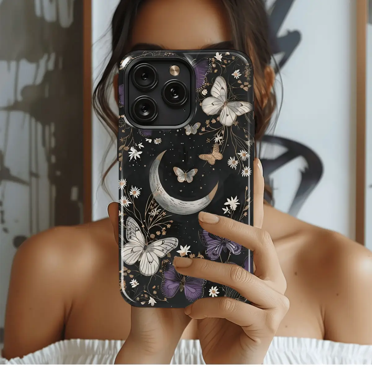 Escape into a whimsical garden adorned with moonlit butterflies that flutter across your phone case. Embrace the tranquility of the night as celestial moths dance gracefully, leaving an enchanting trail of beauty on your device. This case provides both protection and a touch of ethereal wonder, transforming your phone into a nocturnal masterpiece.