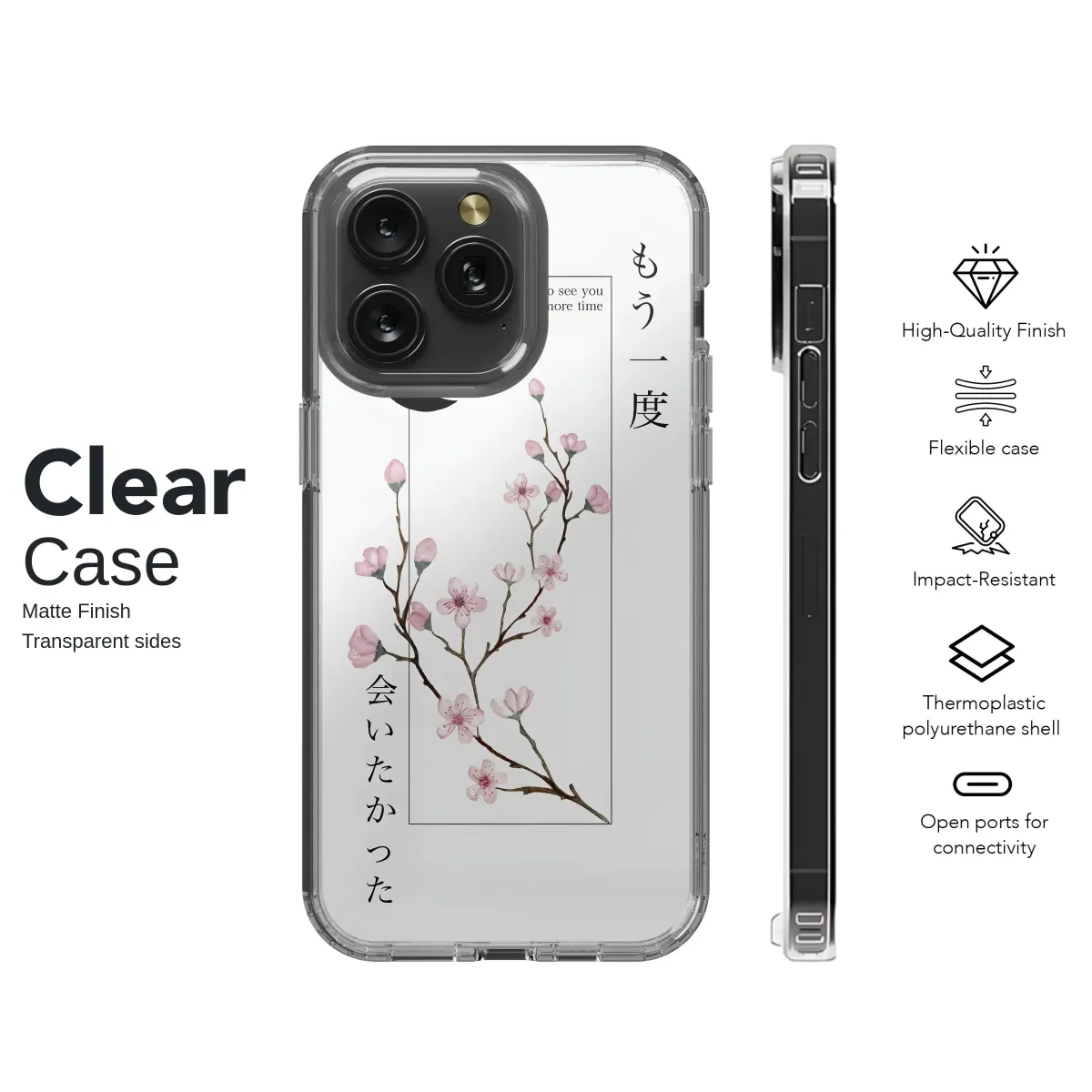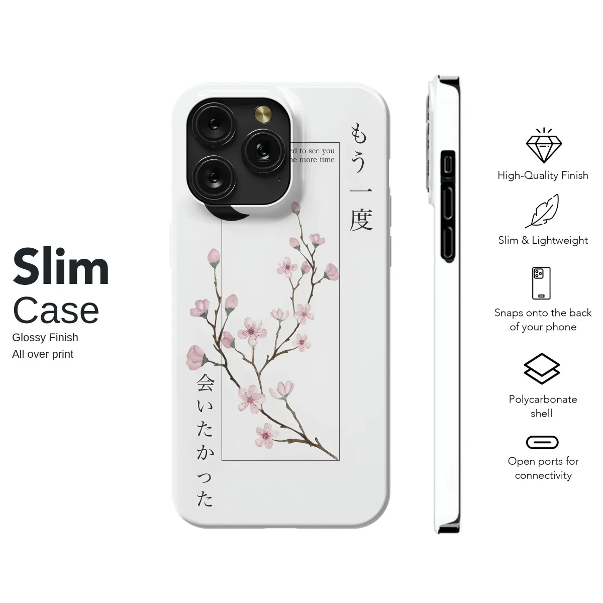 Adorn your device with this minimalist design featuring delicate cherry blossoms under a crescent moon. The elegant watercolor painting is accented by a poignant phrase in both English ("I wanted to see you one more time") and Japanese ("もう一度会いたかった"), evoking feelings of longing and remembrance. This subtle yet striking artwork is perfect for those who appreciate understated beauty and meaningful aesthetics. The design's clean lines and soft color palette offer a calming visual, ideal for adding a touch of serenity to your daily life. This high-quality print is carefully crafted to ensure vibrant colors and lasting durability, maintaining its artistic integrity for extended use. This unique and expressive piece is more than just a decorative accessory; it's a wearable work of art that reflects your refined taste and personal style. Transform your everyday object into a stylish statement piece with this captivating design, a perfect gift for yourself or someone special who appreciates thoughtful and artistic expressions. The calming imagery paired with the evocative message creates a piece that resonates with quiet beauty and emotional depth. Search terms: minimalist, cherry blossom, moon, Japanese, watercolor, art, aesthetic, floral, delicate, longing, remembrance, subtle, calming, serenity.