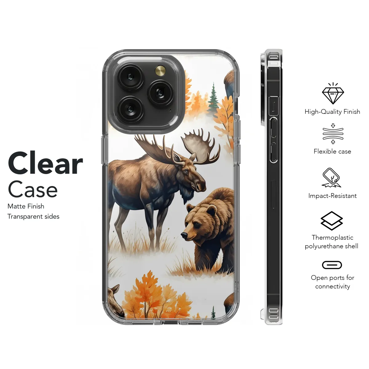 Shield your precious smartphone with our rugged and stylish Moose and Bear Phone Case. Crafted from durable materials, it provides exceptional protection against drops, bumps, and scratches. The eye-catching design, featuring an intricate moose and bear silhouette, adds a touch of wilderness to your device. Available for a wide range of iPhone, Samsung, and Pixel models, this case ensures a perfect fit while maintaining full access to ports and buttons. Experience the fusion of protection and style with our Moose and Bear Phone Case.