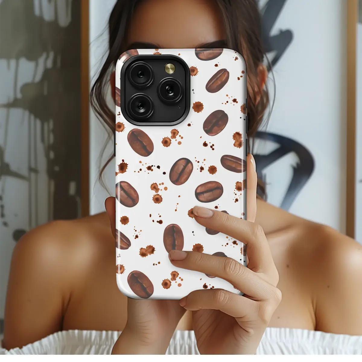 Awaken your senses and carry the comforting essence of your favorite morning ritual with you all day. This stunning artwork captures the heart of coffee culture, featuring beautifully rendered watercolor coffee beans scattered across a crisp, clean background. Each bean is detailed with rich, earthy tones, celebrating the depth and warmth of a perfect dark roast. Playful, artistic splatters of espresso dance between them, adding a dynamic and modern touch that feels both spontaneous and chic. This design evokes the cozy feeling of a beloved neighborhood café, the steam rising from a fresh cup, and the energizing jolt that starts a new day. It is the ultimate accessory for any coffee connoisseur, a perfect gift for the dedicated barista in your life, or simply a treat for yourself. Let this unique, hand-painted inspired artwork be a daily reminder of life's simple pleasures, adding a dash of sophisticated, caffeine-fueled style to your everyday essentials. It’s more than just a pattern; it’s a statement piece for the true coffee lover.