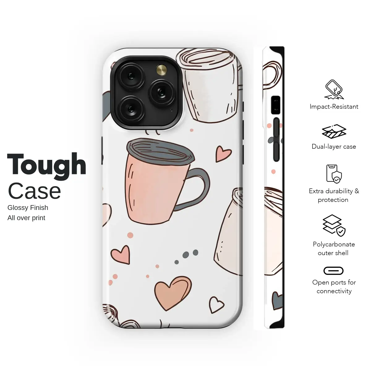 Wrap your most essential daily companion in the comforting embrace of a cozy morning with this utterly charming hand-drawn design. It’s a warm hug you can hold in your hand, celebrating the simple joys of love and coffee. A whimsical pattern of steaming mugs and sweet, scattered hearts dances across a clean white background, rendered in a dreamy, soft aesthetic palette of blush pink, muted slate grey, and gentle sky blue. This cute coffee lover illustration captures that perfect hygge feeling, making it a daily reminder to cherish quiet, restorative moments. The minimalist doodle art style is perfect for anyone who loves a touch of whimsy and personality. It’s a wonderfully thoughtful gift for her—your best friend, sister, or a favorite teacher—or a well-deserved treat to elevate your own personal style. Let this lovely, illustrated accessory protect your tech with a design that’s as sweet and comforting as your favorite warm beverage, turning an everyday essential into a unique piece of art that speaks to your cozy soul.