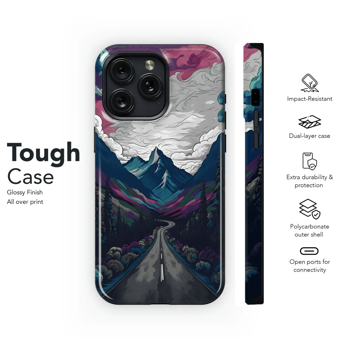 Escape into the serenity of a mountain road dreamscape with our Phone Case, designed to protect your iPhone, Samsung, or Pixel 4433. Its captivating imagery captures the essence of a winding road amidst towering mountains, inviting you to embark on an adventure from the comfort of your device. Let the breathtaking scenery inspire you and keep you connected wherever your journey takes you.