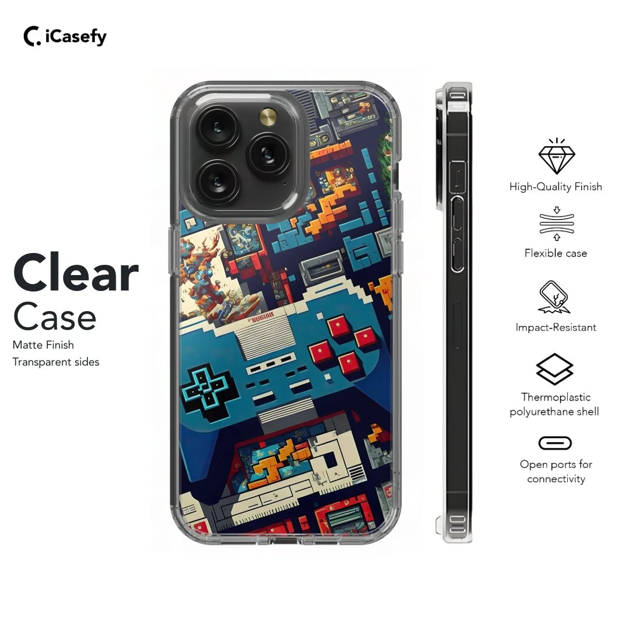 Elevate your mobile gaming experience with our sleek Game Controller Phone Case!Designed for iPhone, Samsung, Pixel, and more, this case transforms your smartphone into the ultimate gaming machine. Its ergonomic grips mimic actual game controllers, providing unparalleled comfort and precision during intense gaming sessions.Crafted from high-quality materials, our case offers superior protection against drops, scratches, and everyday wear and tear. Its slim profile ensures easy handling without adding bulk, while its precise cutouts provide seamless access to all buttons and ports.Whether you're a casual gamer or a competitive enthusiast, our Game Controller Phone Case is the perfect companion for your mobile gaming adventures. Get yours today and unleash your gaming potential!Clear Case: