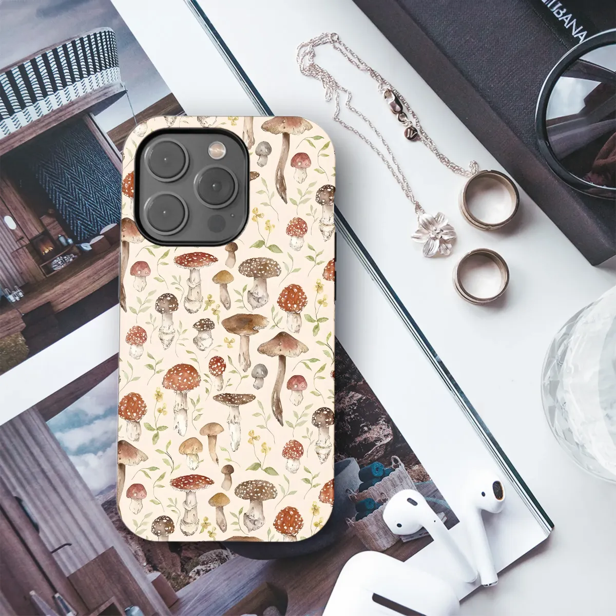 Embrace the enchanting allure of the forest with this captivating mushroom design. This exquisite watercolor artwork features a delightful array of fungi in various shapes, sizes, and earthy tones, delicately interspersed with tiny yellow wildflowers on a soft cream background. The intricate detail and vibrant colors create a magical, whimsical aesthetic perfect for adding a touch of nature-inspired charm to your everyday life. This design is printed using high-quality inks for exceptional vibrancy and longevity, ensuring your accessory maintains its beauty for years to come. It's a unique and stylish statement piece, reflecting a love for nature and a taste for the extraordinary. The design's versatility makes it a thoughtful gift for mushroom enthusiasts, nature lovers, or anyone who appreciates handcrafted artistry. Its timeless appeal guarantees it remains a cherished accessory, a subtle yet stunning reminder of the beauty found in the natural world. This enchanting pattern is sure to garner compliments and spark conversations, a testament to its captivating design and superior craftsmanship. Transform your accessory into a miniature work of art, showcasing your appreciation for the wonders of nature.