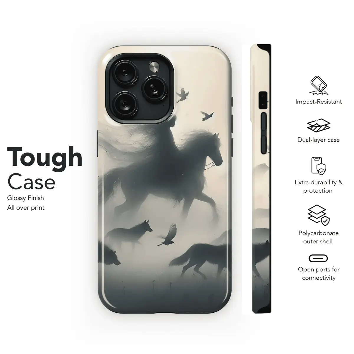 Embark on a mystical journey with this stunning phone case! Featuring a captivating rider design, this case offers both style and protection for your iPhone, Samsung, or Pixel. Available for models 4, 6, 60 and 4660.