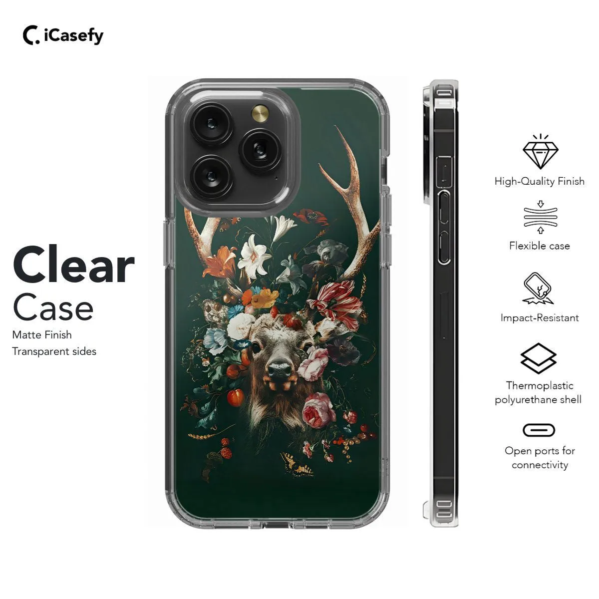 Step into the mystical depths of the forest with our Deer Floral Dark phone case. Adorned with elegant deer motifs and intricate floral patterns against a dark backdrop, this case captures the enchanting allure of nature's beauty. Crafted with precision, it features precise cutouts for easy access to ports and buttons, ensuring convenience without compromising style. Its slim profile offers a sleek aesthetic while providing reliable protection against daily bumps and scratches. Immerse yourself in the tranquility of the forest with our Deer Floral Dark phone case. Order now and carry a touch of enchantment wherever you go!