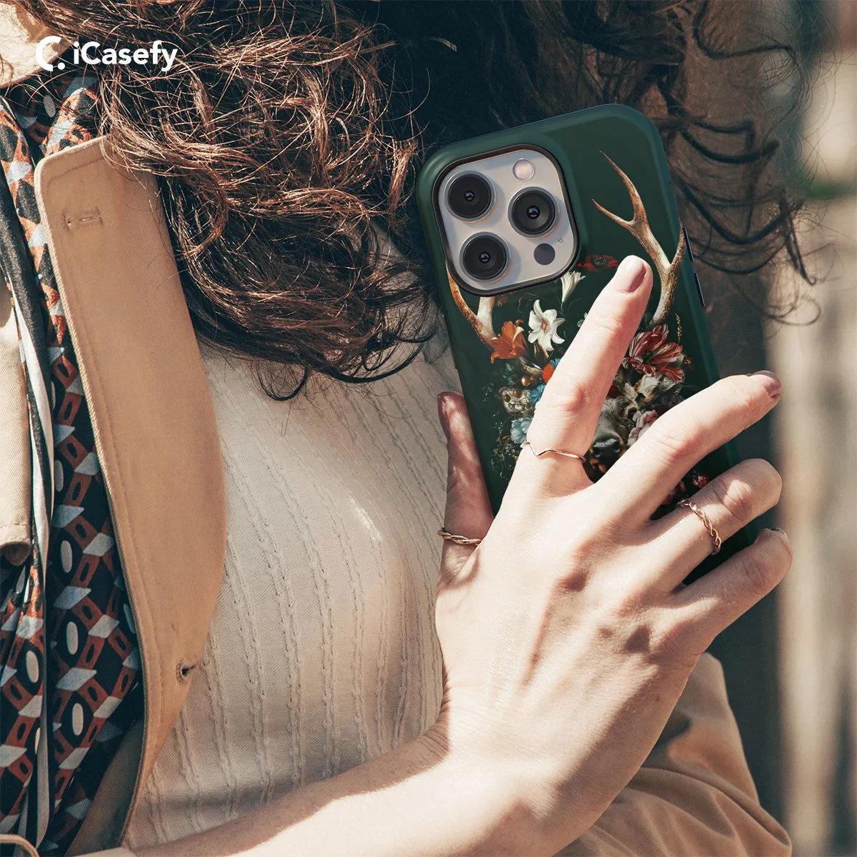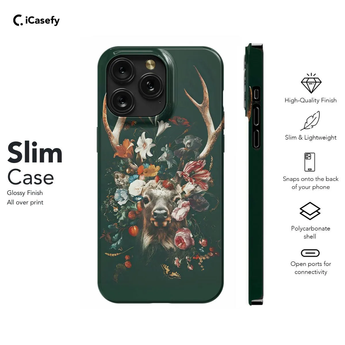 Step into the mystical depths of the forest with our Deer Floral Dark phone case. Adorned with elegant deer motifs and intricate floral patterns against a dark backdrop, this case captures the enchanting allure of nature's beauty. Crafted with precision, it features precise cutouts for easy access to ports and buttons, ensuring convenience without compromising style. Its slim profile offers a sleek aesthetic while providing reliable protection against daily bumps and scratches. Immerse yourself in the tranquility of the forest with our Deer Floral Dark phone case. Order now and carry a touch of enchantment wherever you go!